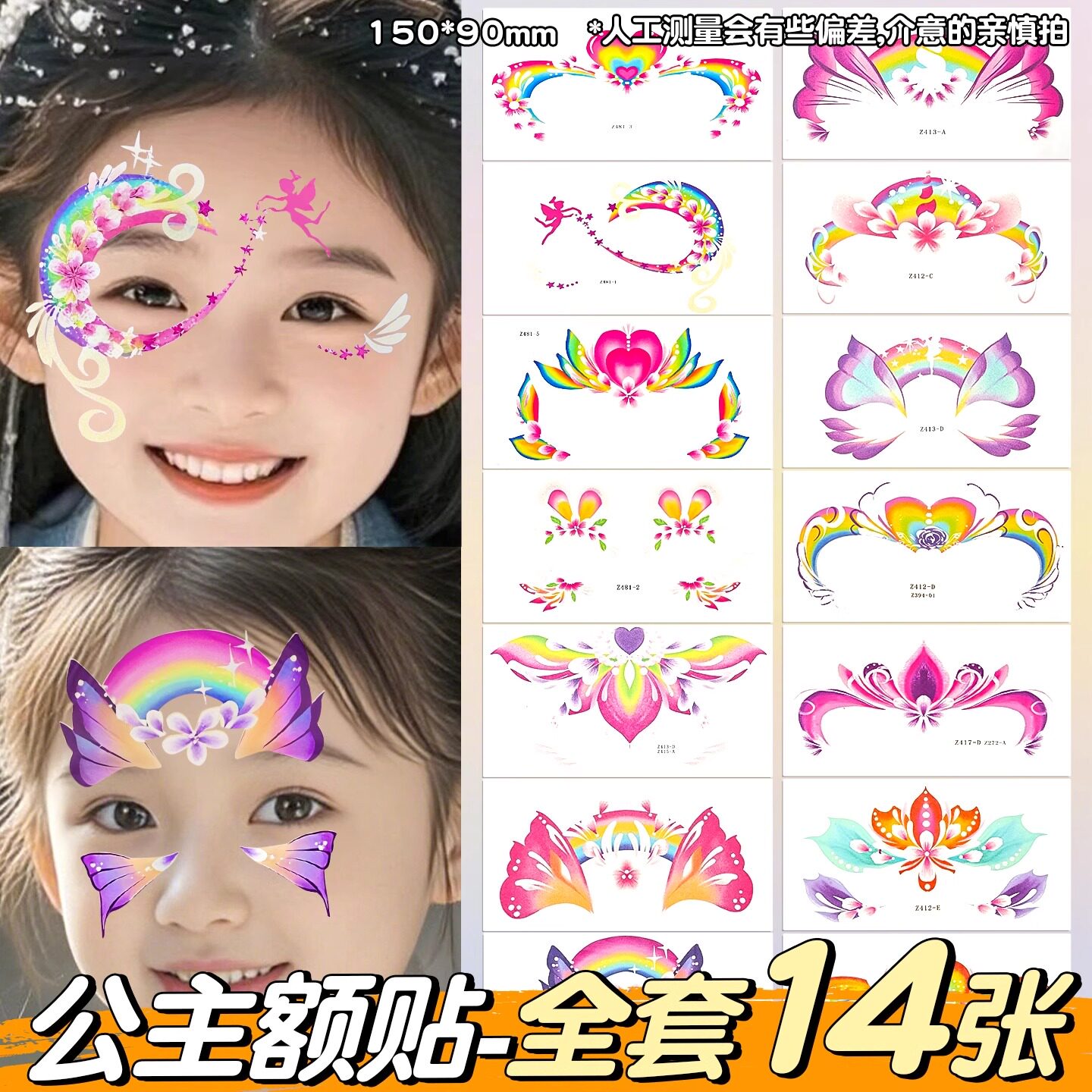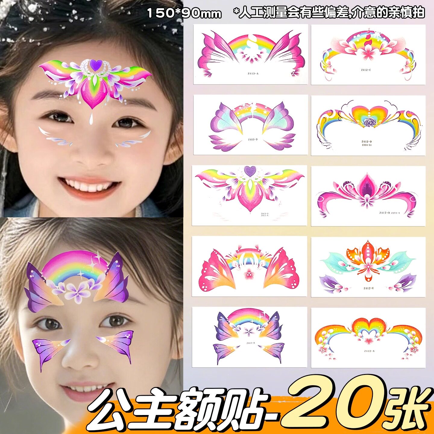脸部彩绘妆容贴纹身贴装扮公主额头贴纸女孩儿童cos可爱蝴蝶眉心贴表演花钿装饰小图案幼儿园舞台彩妆自粘C1
