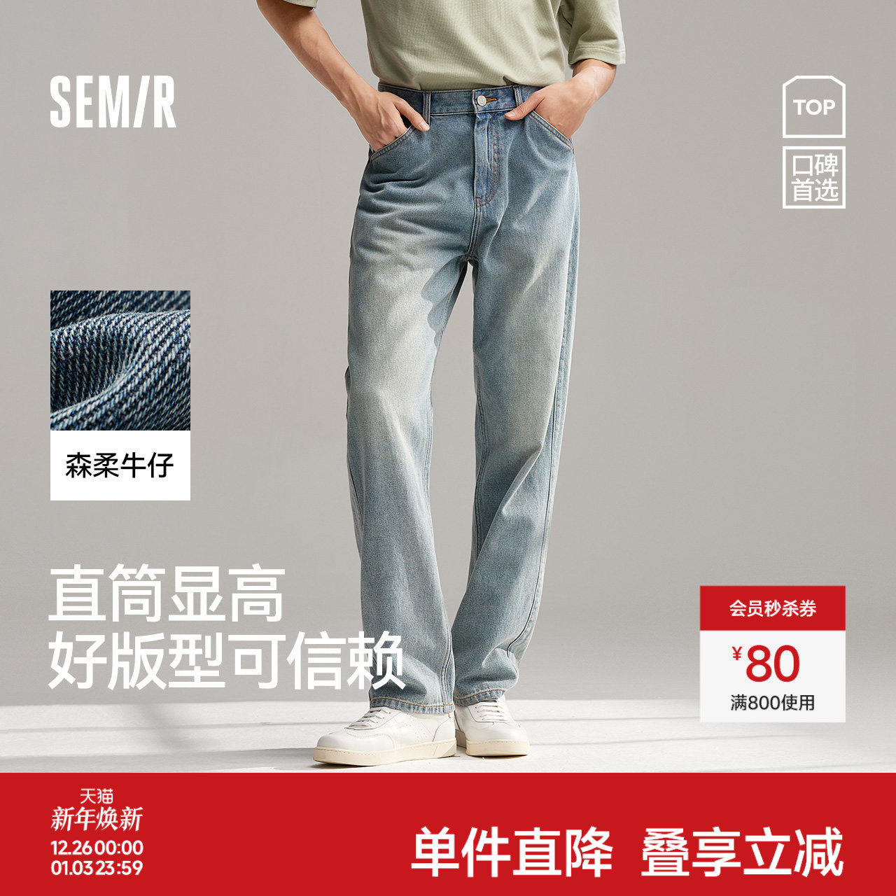 森柔牛仔森马牛仔裤男款2025新直筒裤长裤原色复古美式水洗宽松潮
