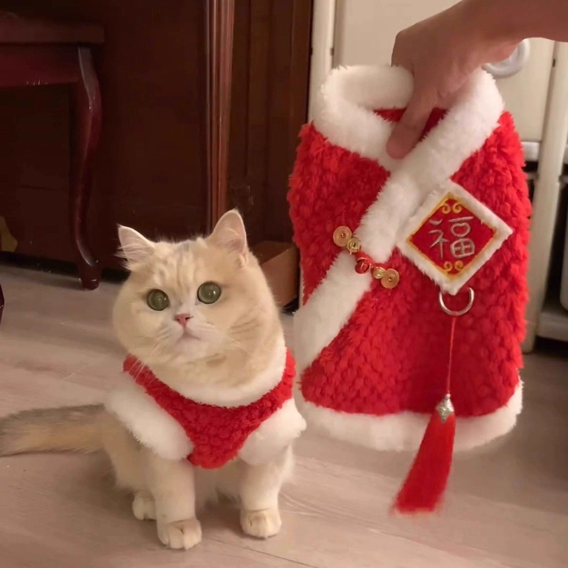 小猫咪衣服冬天新年刺绣福字背心英短布偶金渐层防掉毛加绒保暖衣
