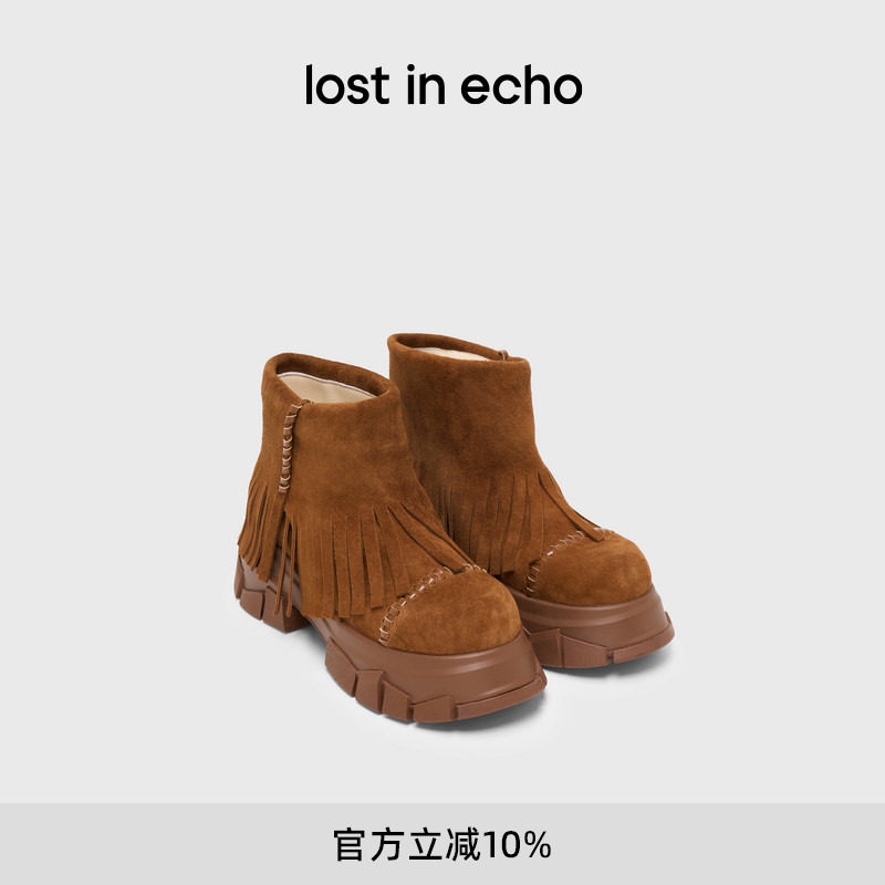 lost in echo2025冬季新款仿麂皮波西米亚风流苏厚底碎石底短靴子