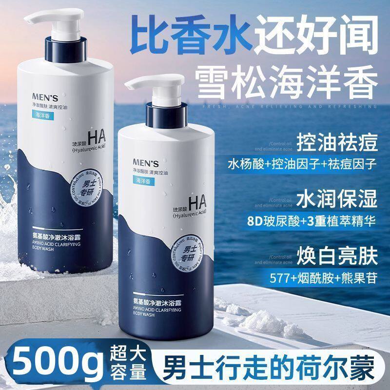 氨基酸男士海洋沐浴露持久留香祛背痘焕青少年洗发水洗护水杨酸