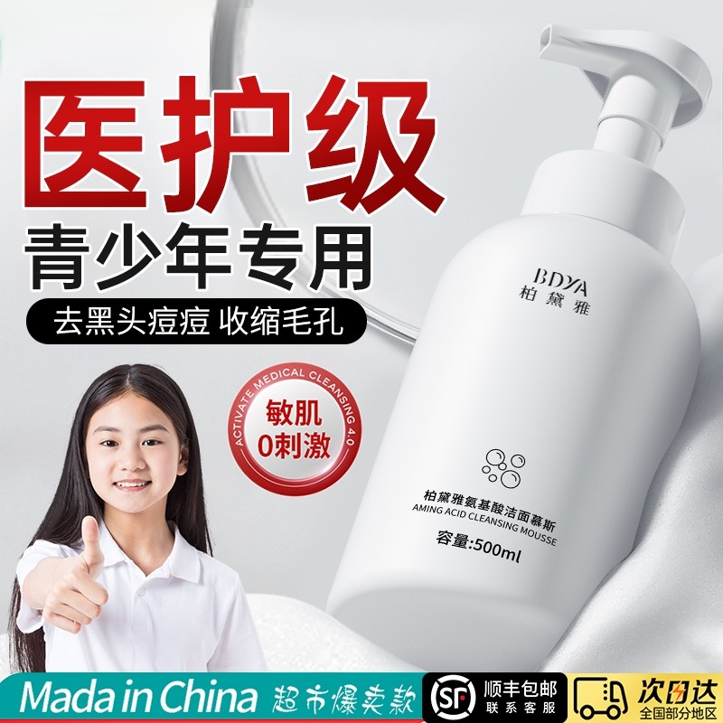 青少年氨基酸洗面奶控油粉刺净痘螨青春期少女孩男童学生儿童专用
