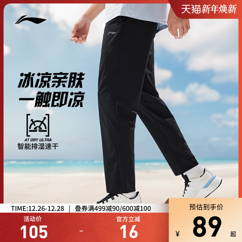 李宁速干裤男士夏季新款跑步裤透气黑色裤子直筒宽松运动裤长裤男
