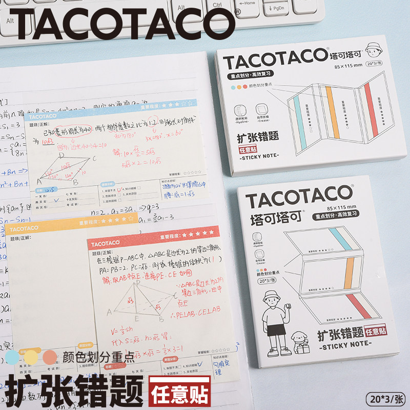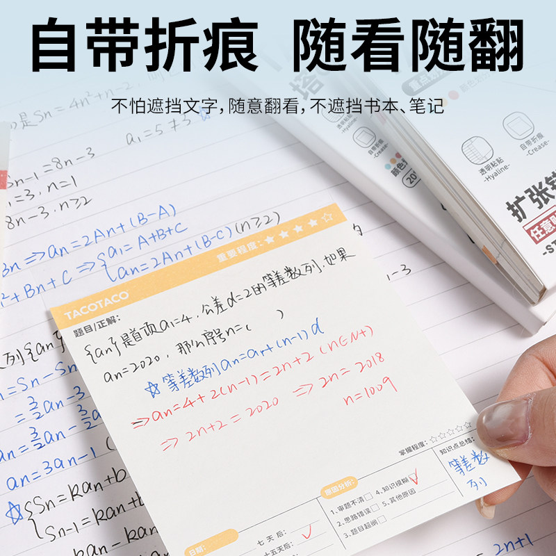TACOTACO新款竖版扩张便利贴三合一不遮挡透明可折叠考研学生用可撕有粘性错题贴纸任意贴