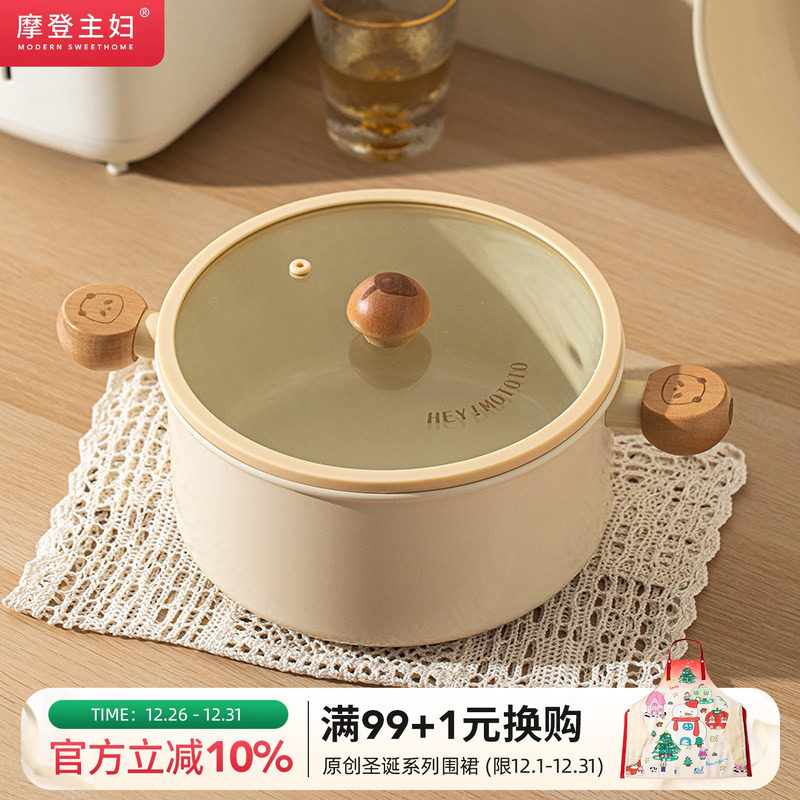 摩登主妇mototo熊猫汤锅家用燃气不粘锅食品级加厚双耳锅煲汤煮锅