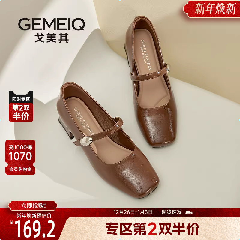 戈美其商场同款粗跟单鞋女中跟2025新款通勤百搭配裙子玛丽珍女鞋