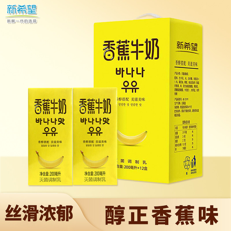 新希望南山香蕉牛奶200ml*12盒 整箱发货 学生儿童营养早餐奶