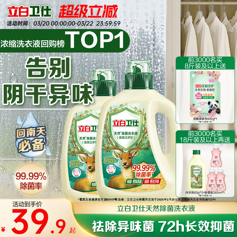 立白卫仕天然植物除菌洗衣液家用除真菌除螨茶香正品洁净机洗手洗