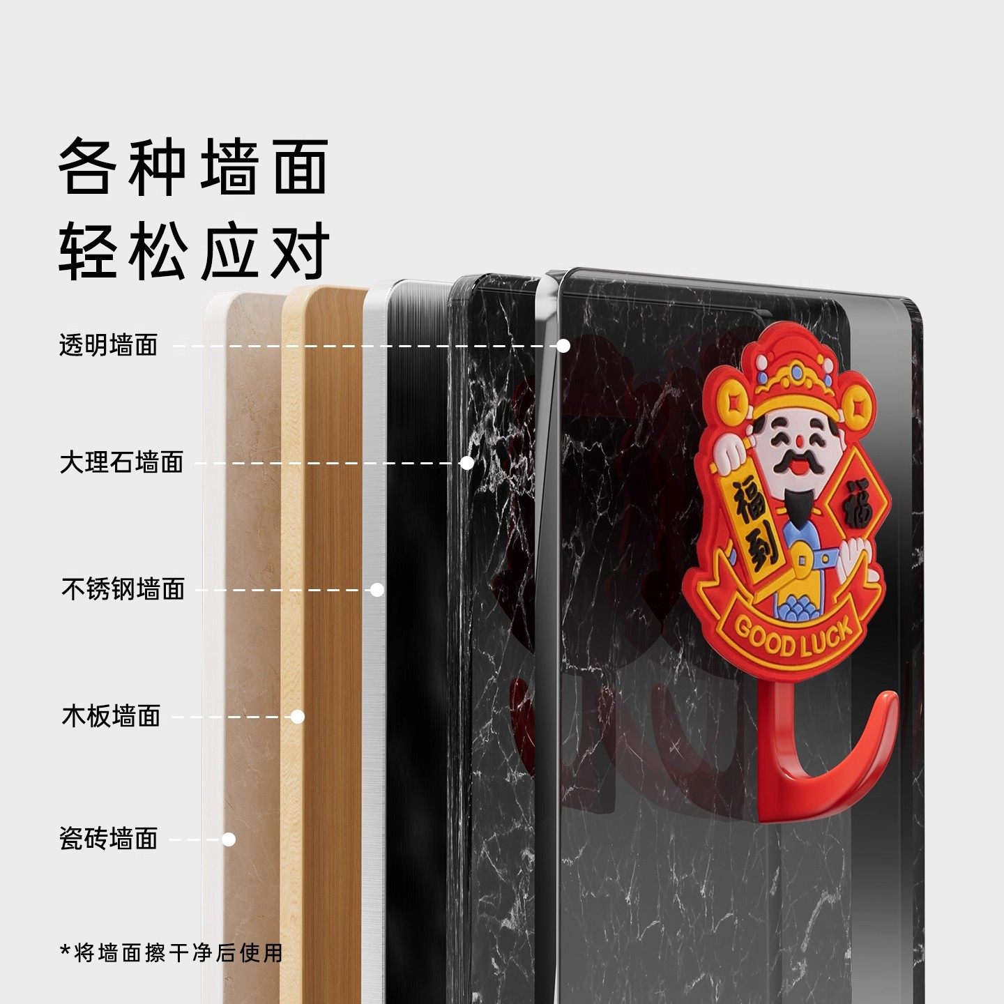 财神装饰新款创意中式福客厅挂钩钥匙承重粘胶式免打孔挂钩