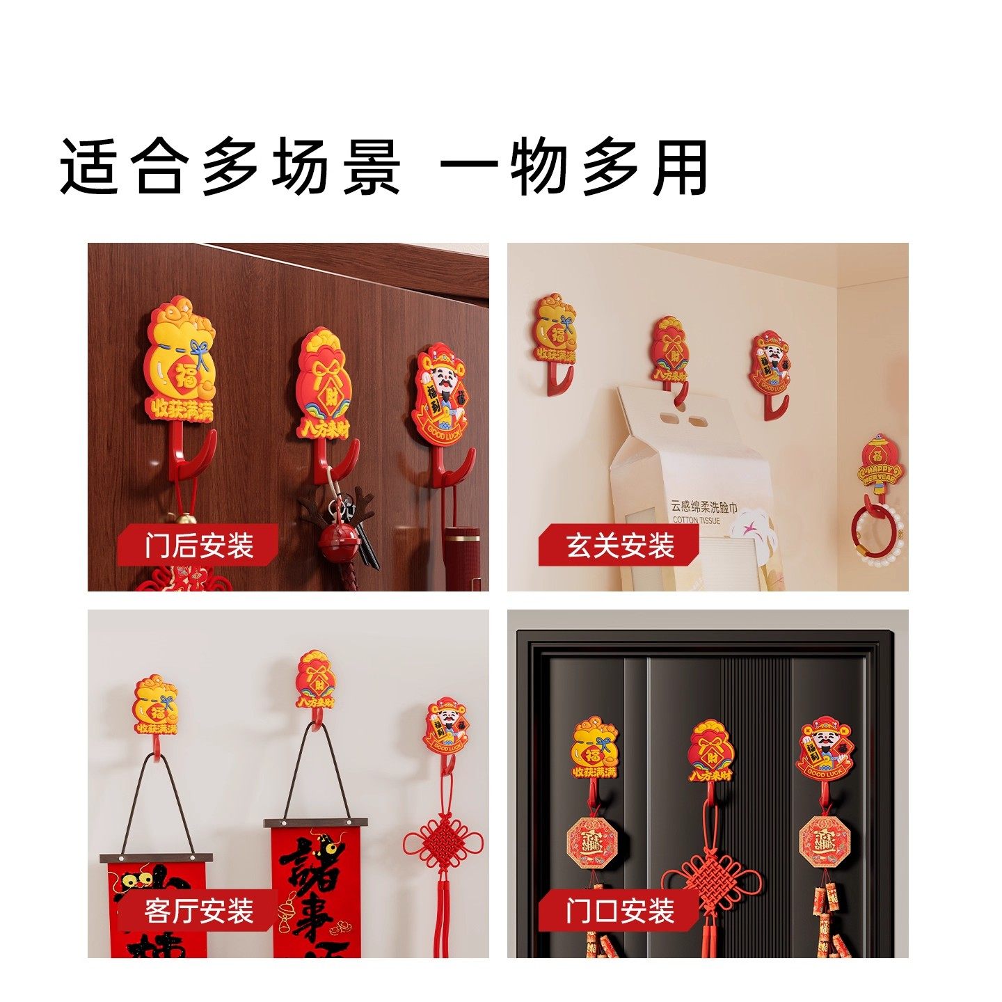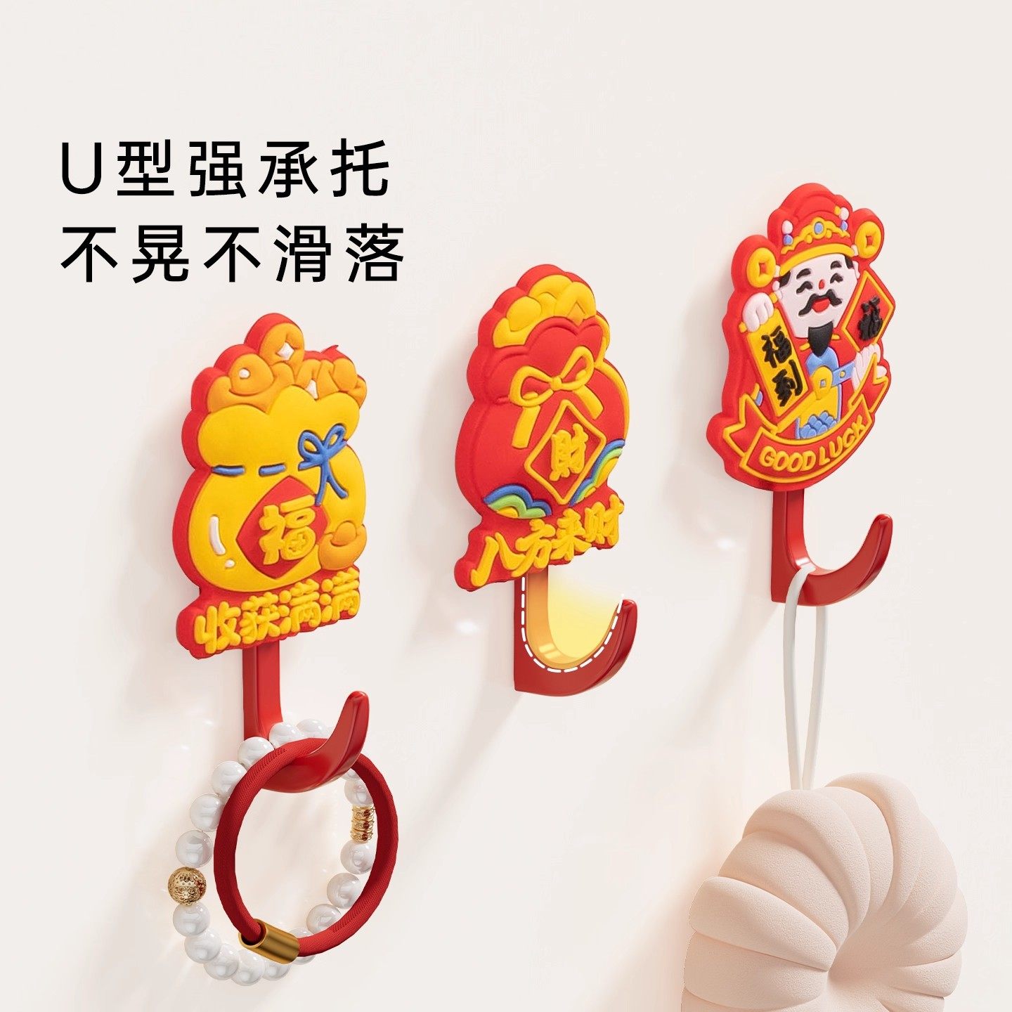中国红色福字挂钩新年粘钩打孔无痕结婚钩子粘胶喜庆墙上宿舍强力
