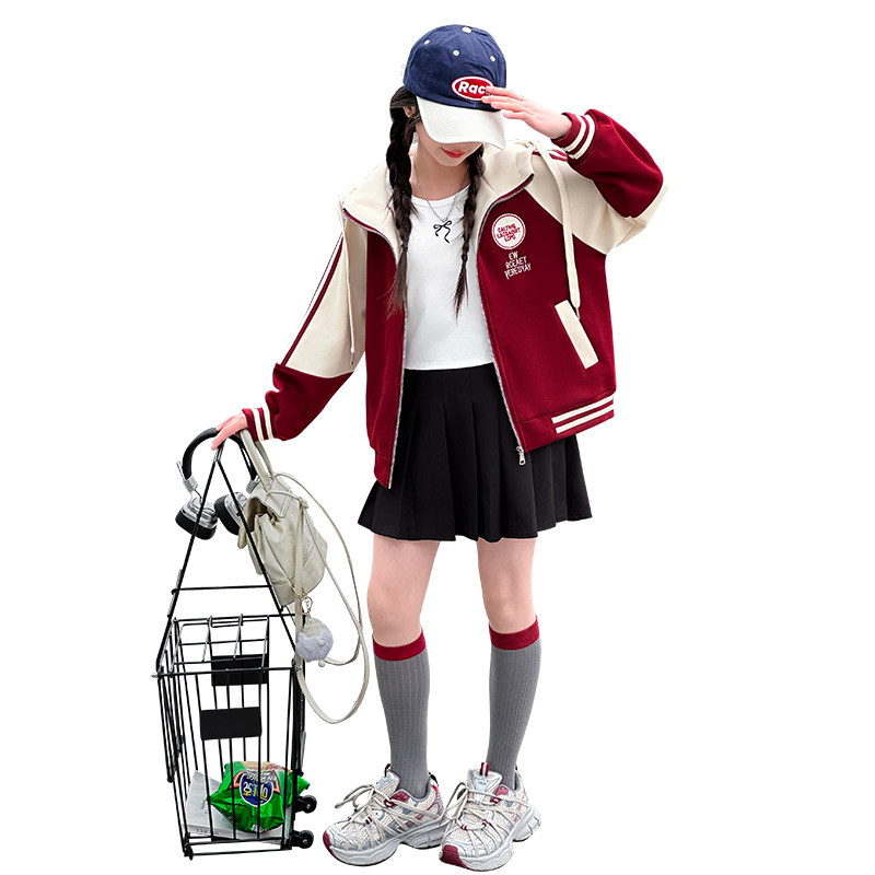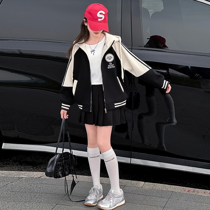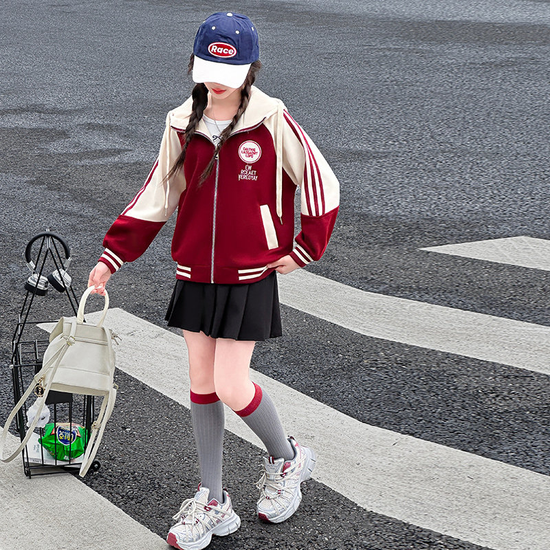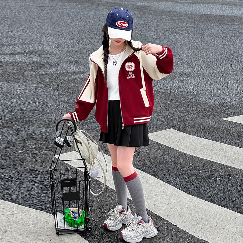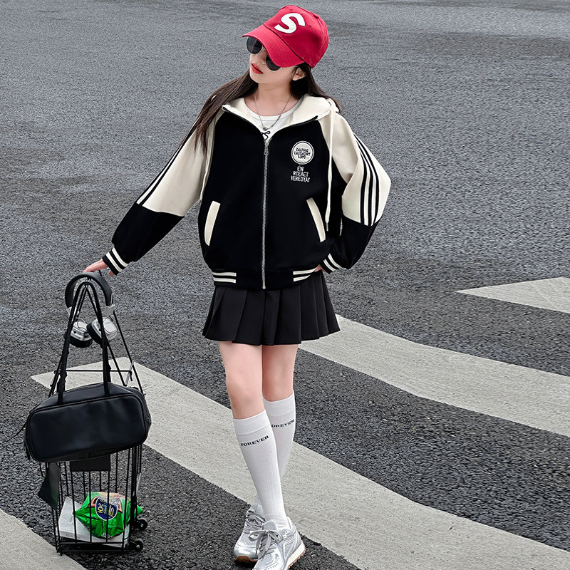 女童外套2025秋冬加绒儿童洋气开衫卫衣大童女孩春装连帽夹克上衣