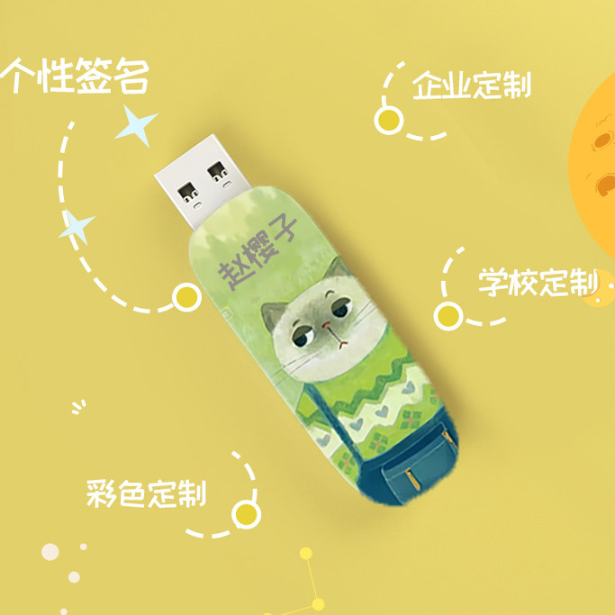 【官方正品】台电定制logo刻字礼品u盘女生冷漠猫64G高颜值