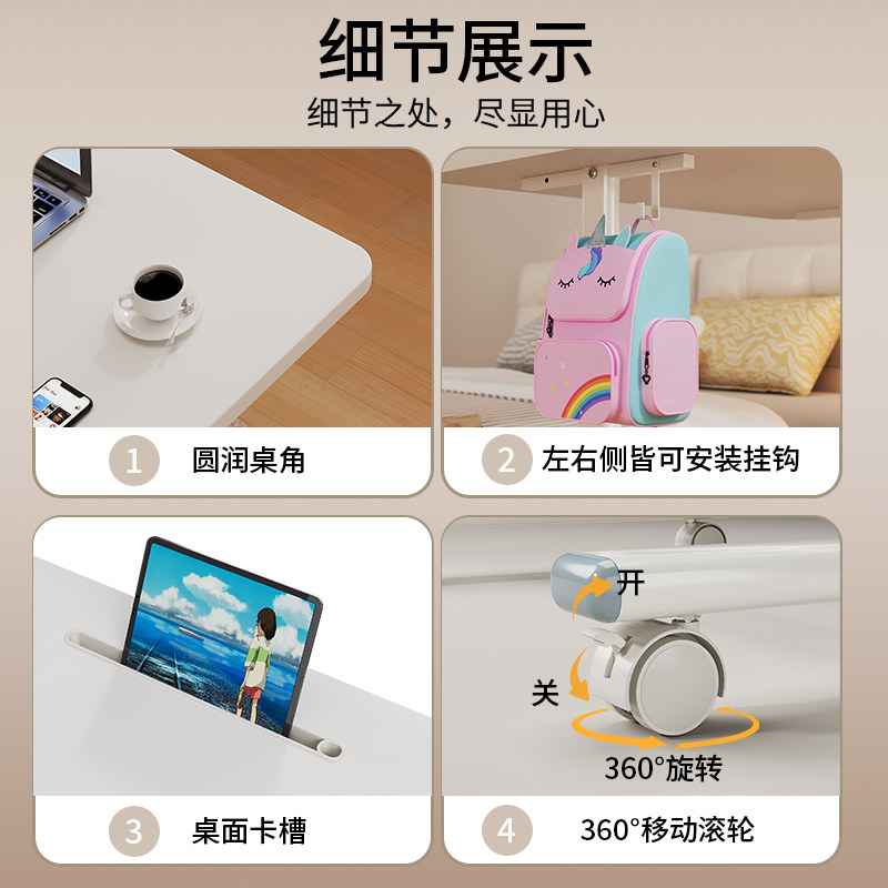 可升降床边小桌子学习书桌笔记本电脑桌支架懒人卧室床边桌边几大学生宿舍学生写字小桌板儿童看书课桌膝上桌