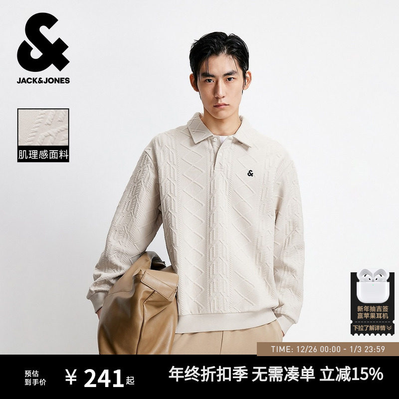 【POLO衬衫领卫衣】杰克琼斯男装秋季新款肌理面料外套情侣刺绣