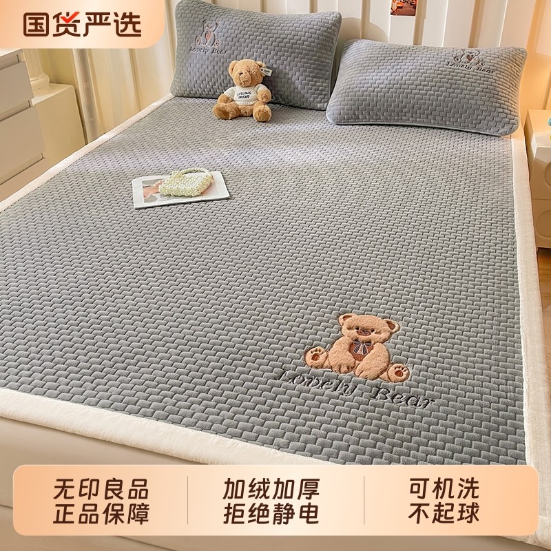 无印良品牛奶绒床单单件2025新款珊瑚绒夹棉单人毛绒被单加绒冬季