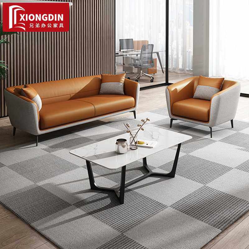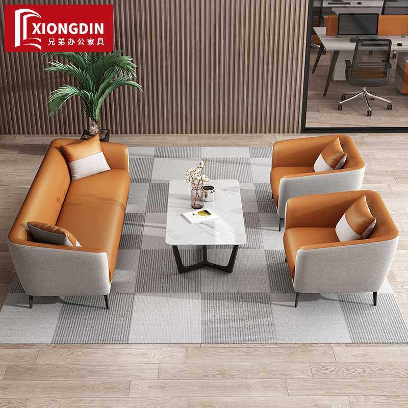 办公室沙发会客接待区三人位皮艺办公沙发休闲区洽谈茶几组合套装