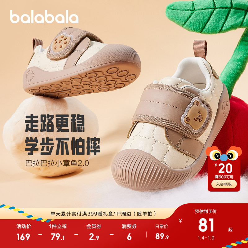 巴拉巴拉童鞋儿童学步鞋鞋子可爱婴儿鞋春秋季男宝女宝潮新魔术贴
