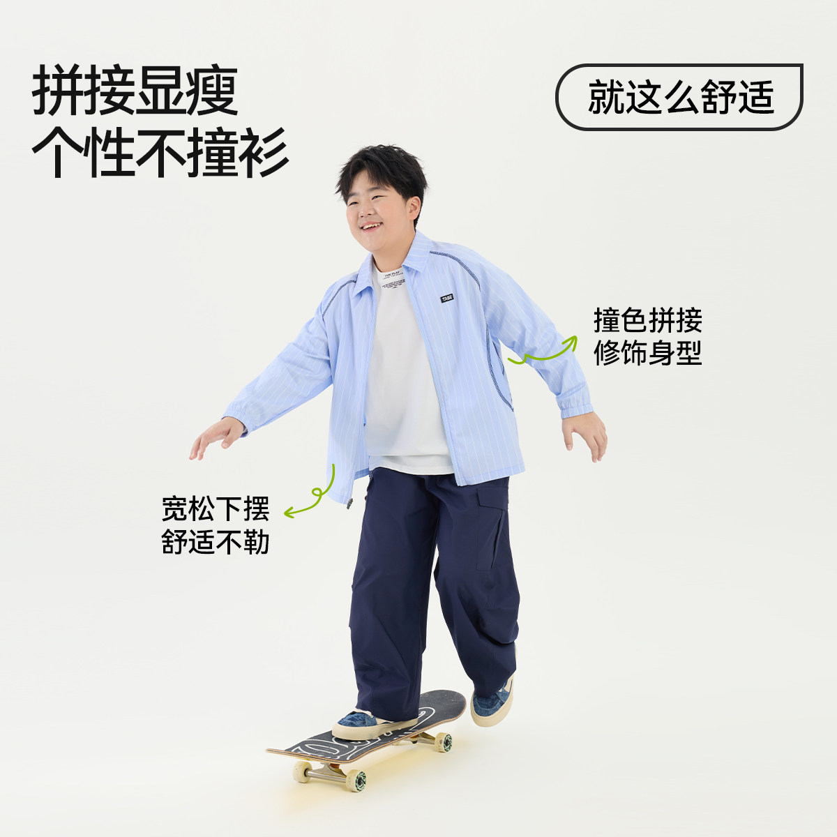 【学院风拉链衬衫】小猪托尼胖男童长袖衬衫宽松休闲翻领条纹上衣