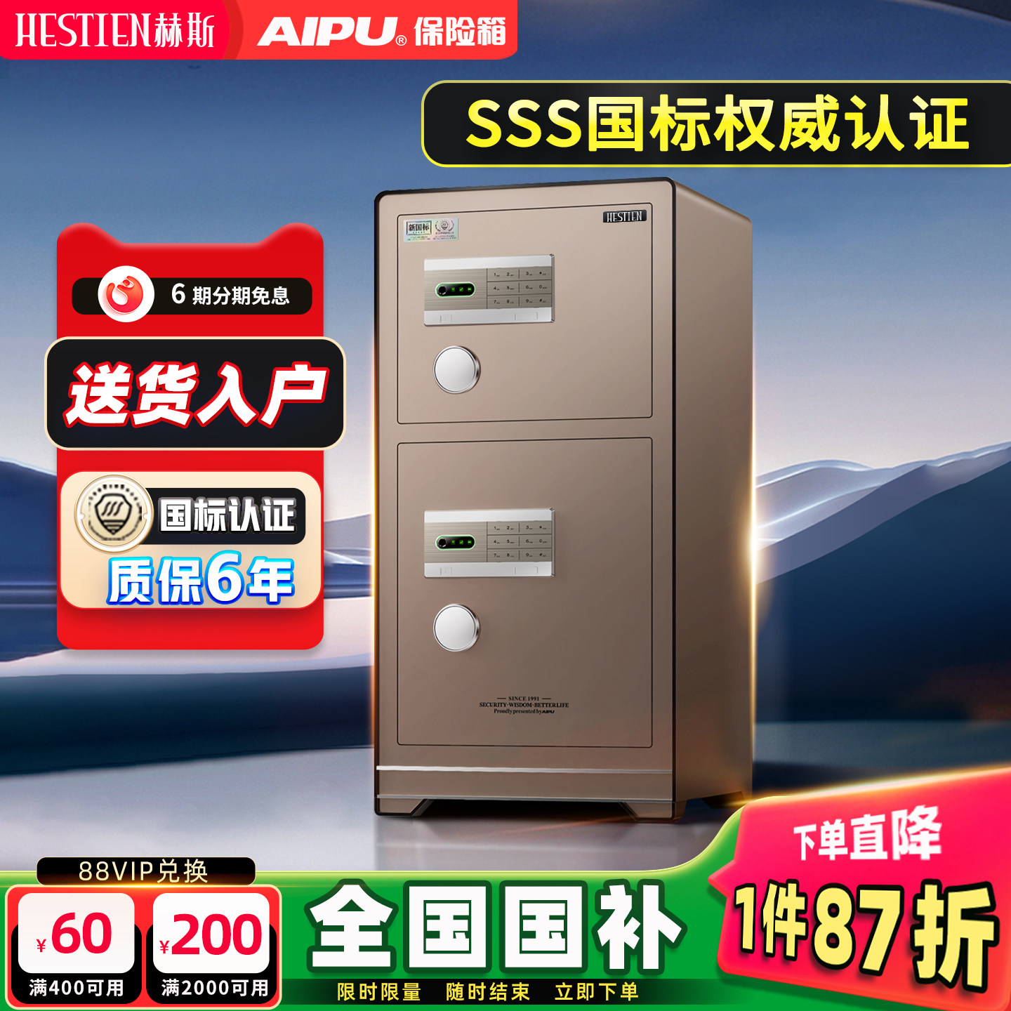 AIPU艾谱赫斯双门保险柜指纹密码保险箱新国标认证大型智能家庭办公防盗全钢钥匙入墙衣柜1米高上下柜夹万
