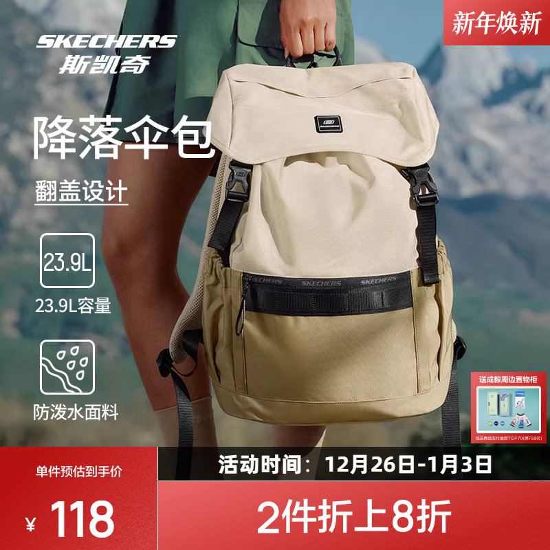 斯凯奇双肩背包男女同款降落伞包年通勤电脑包大容量户外包书包