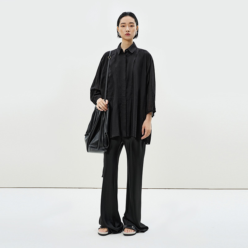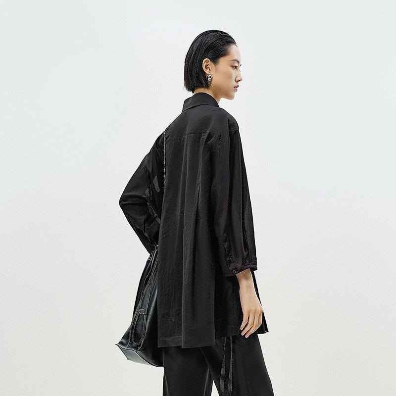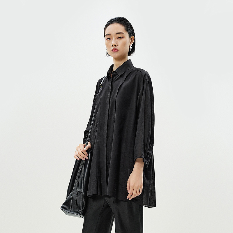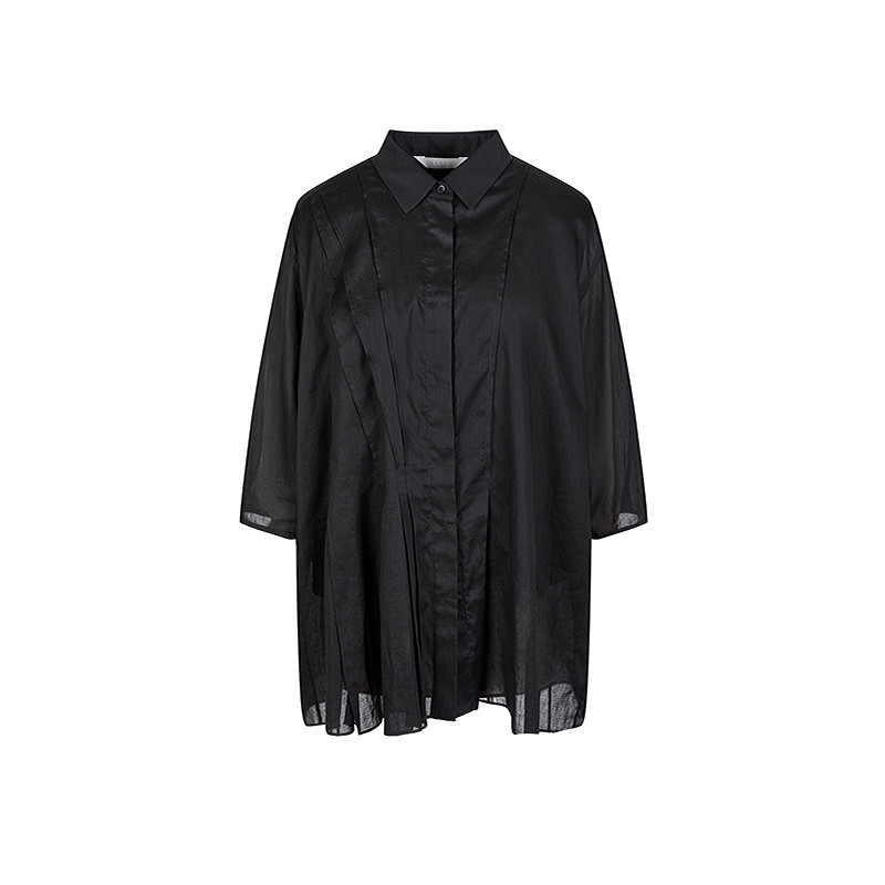 LESS夏设计感棉质通勤宽松简约衬衣黑衬衫拼接上衣女2P5214070