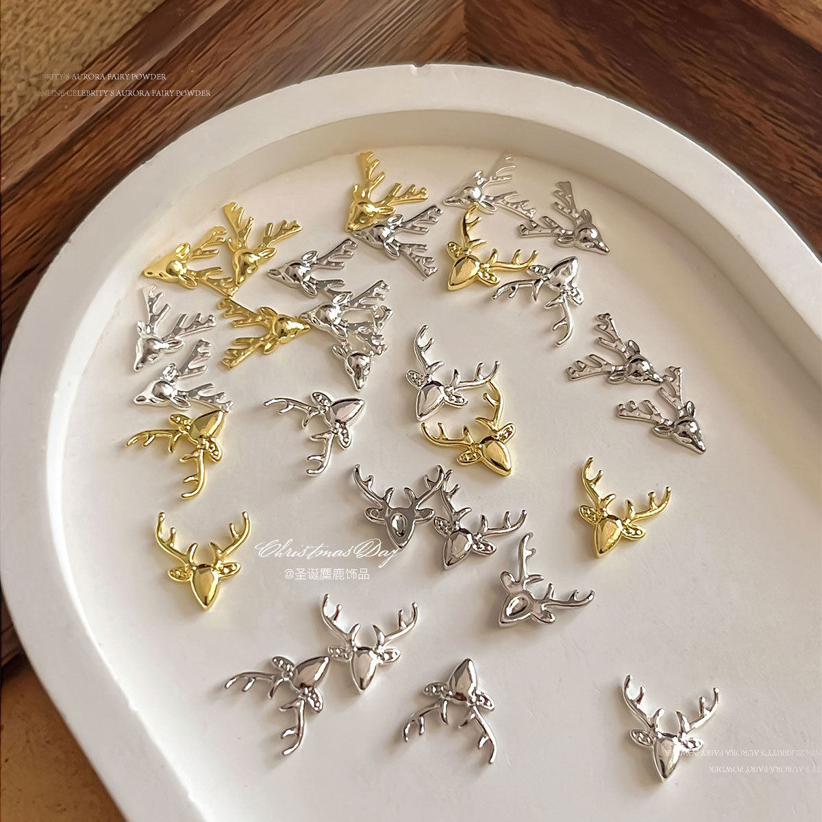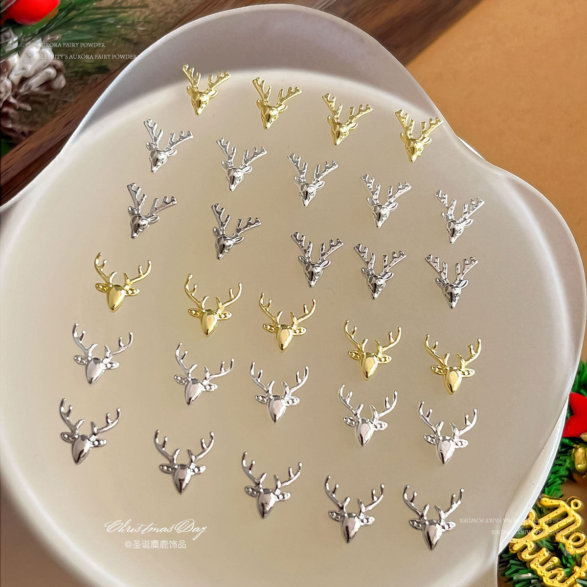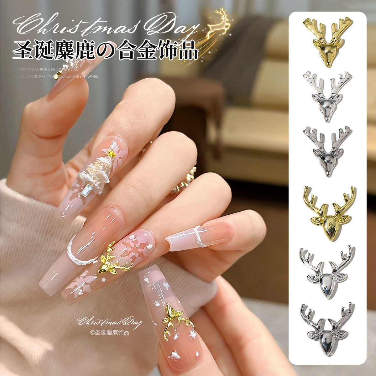圣诞麋鹿美甲饰品精致轻奢立体卡通圣诞节合金指甲钻穿戴配饰