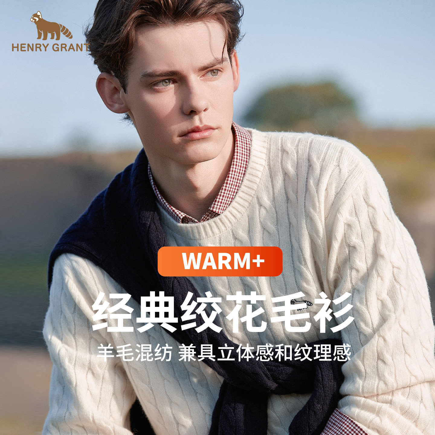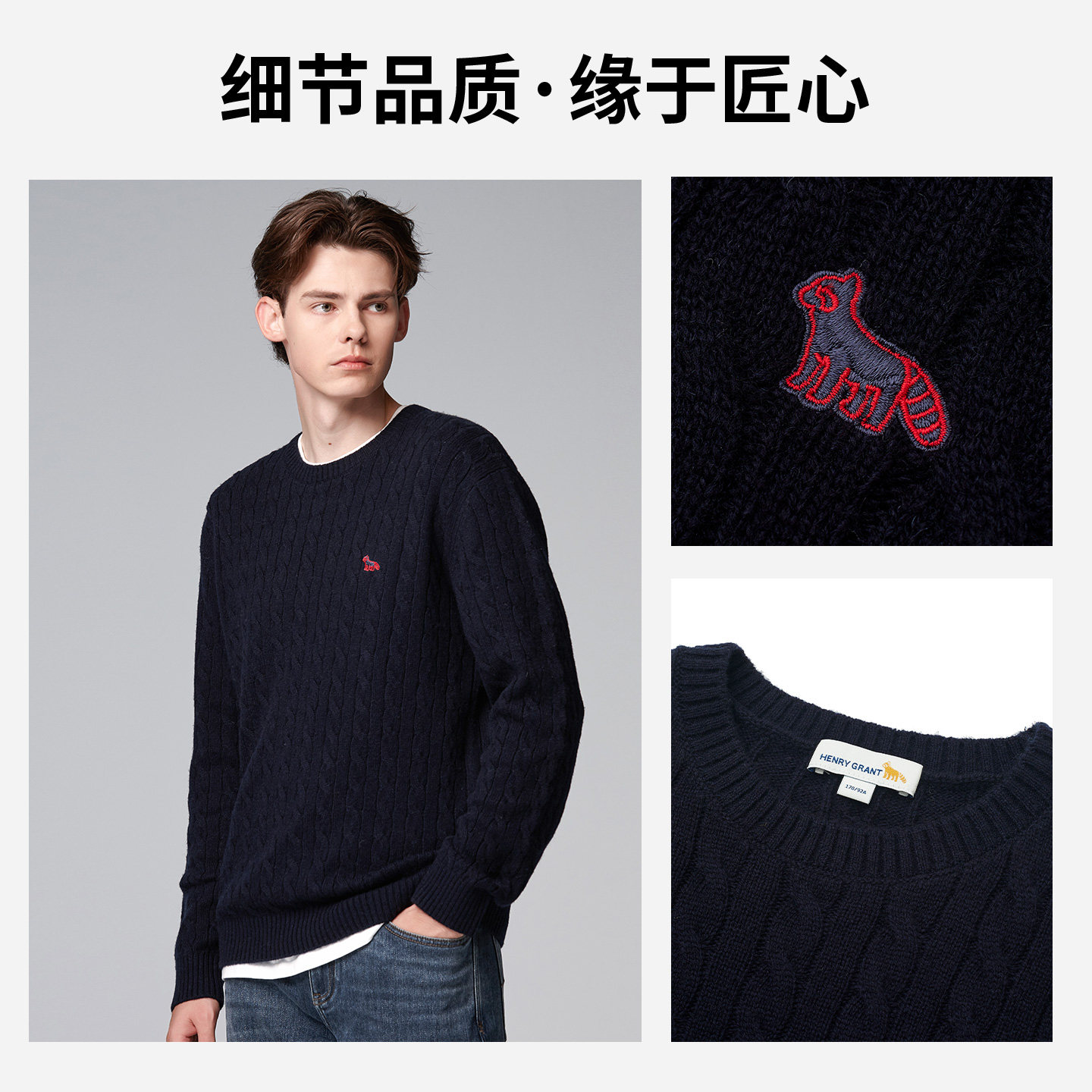 亨利格兰经典绞花羊毛衫男士2025秋冬休闲保暖毛衣百搭打底衫上衣