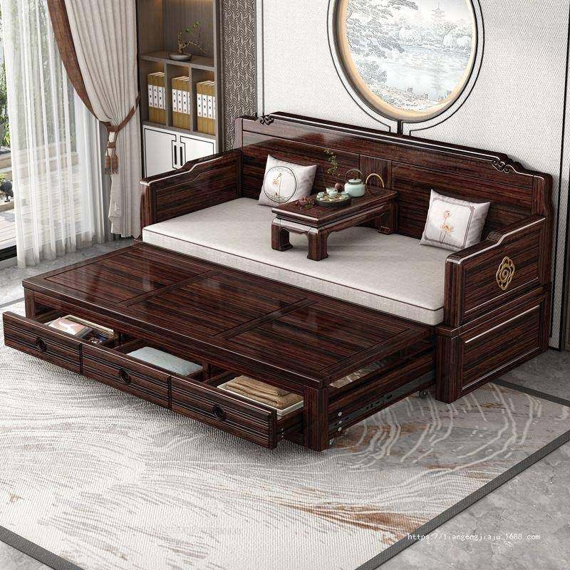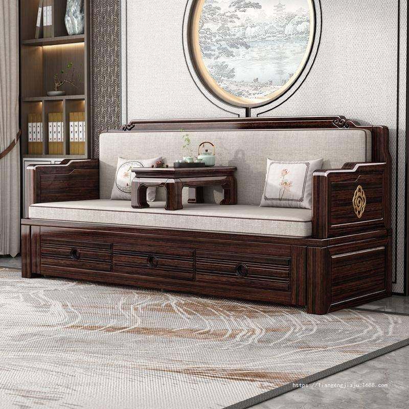 新中式实木罗汉床沙发床两用多功能高端沙发床带抽屉2025新款沙发