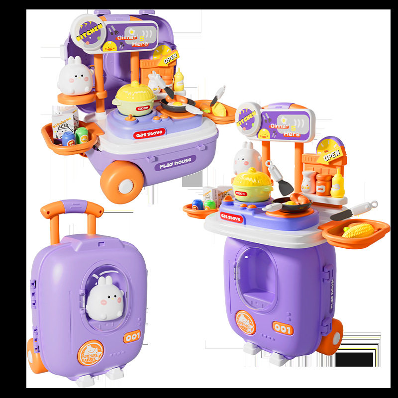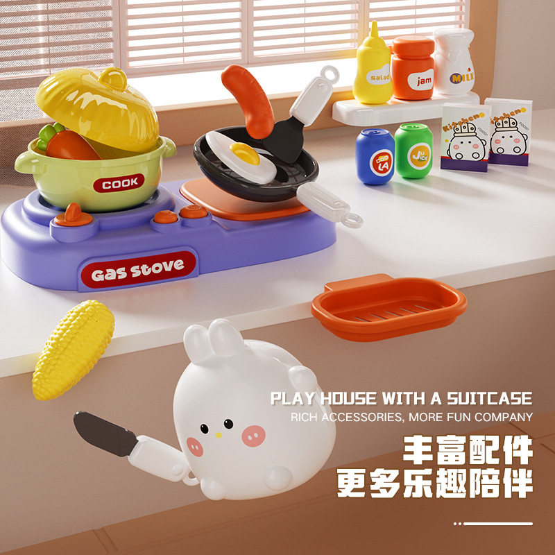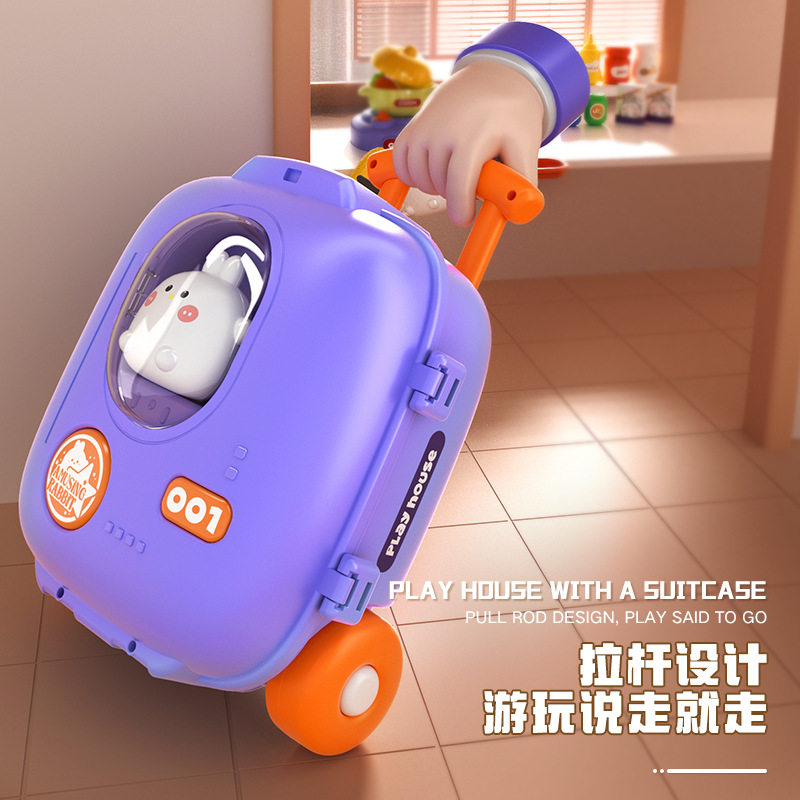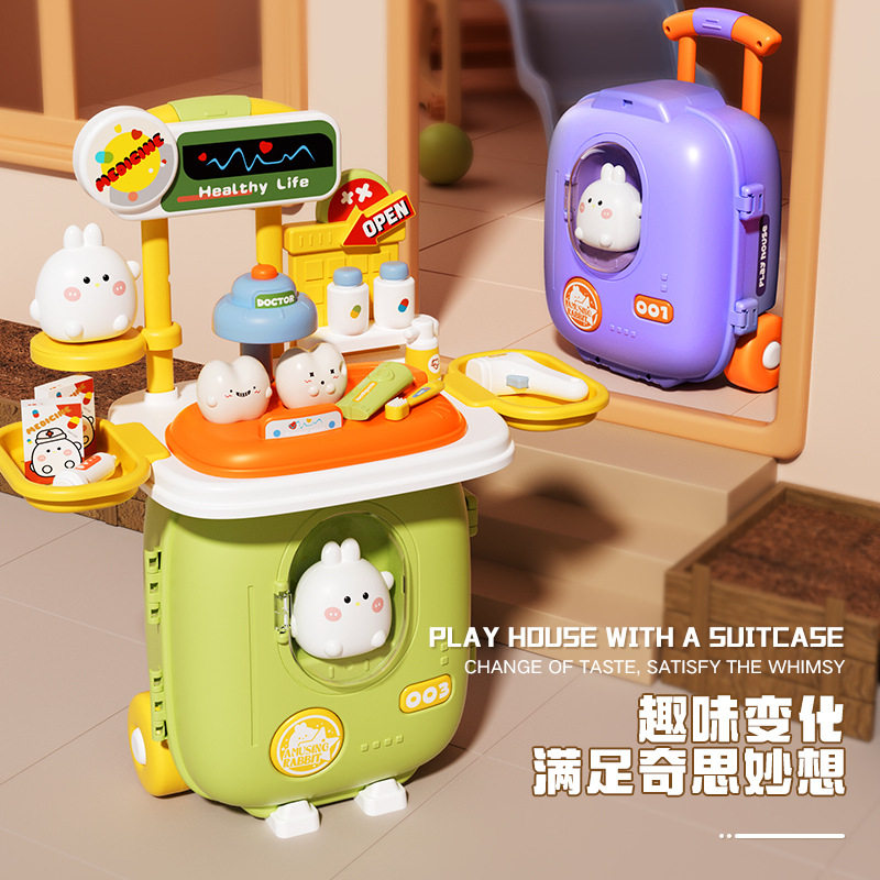 2025新品过家家拉杆箱萌兔彩泥收纳背包仿真医具饰品厨房儿童玩具