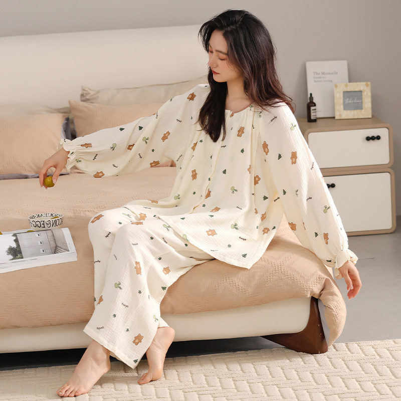 婧麒月子服春夏款纯棉纱布产后孕妇哺乳睡衣夏季薄产妇喂奶家居服