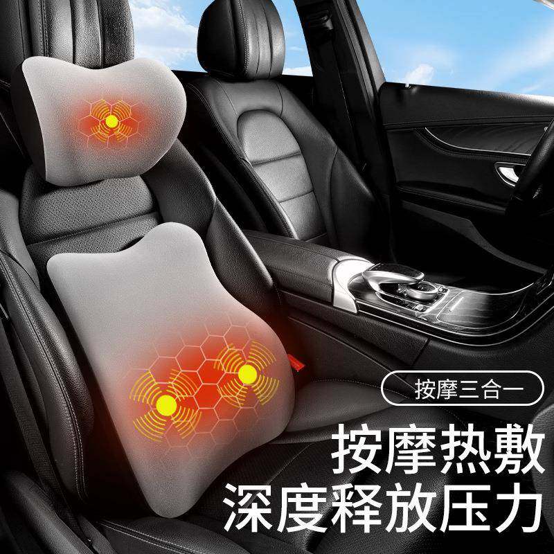 加热电动汽车按摩头枕腰靠办公室车载护腰靠垫腰垫座椅护颈枕套装