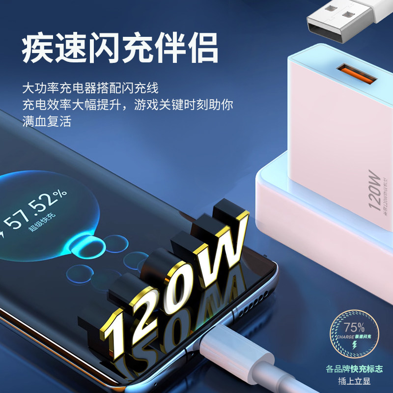 3C认证兼容120W快充QC3.0闪充66W快充充电器手机适用华为 vivo iqoo 小米oppo充电头数据线套装盒装批发