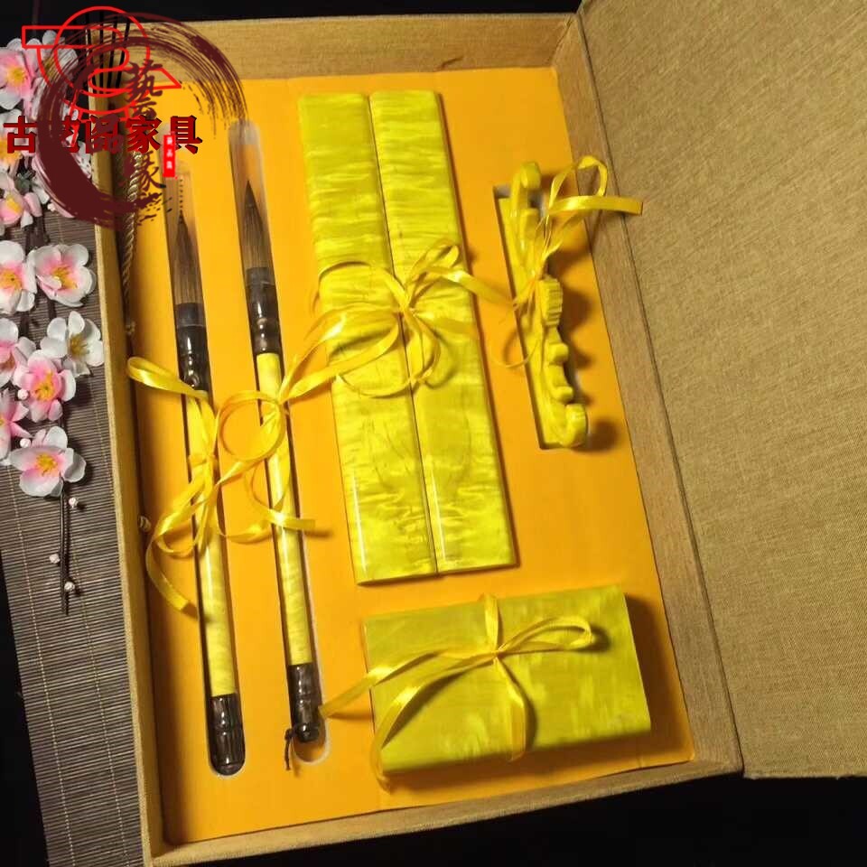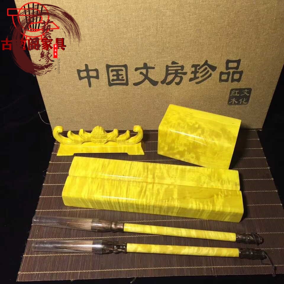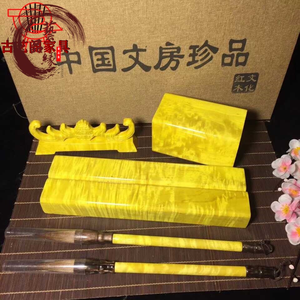 金丝楠木梅兰竹菊五5件套大叶楠木雕刻文房四宝书房办公用品包邮