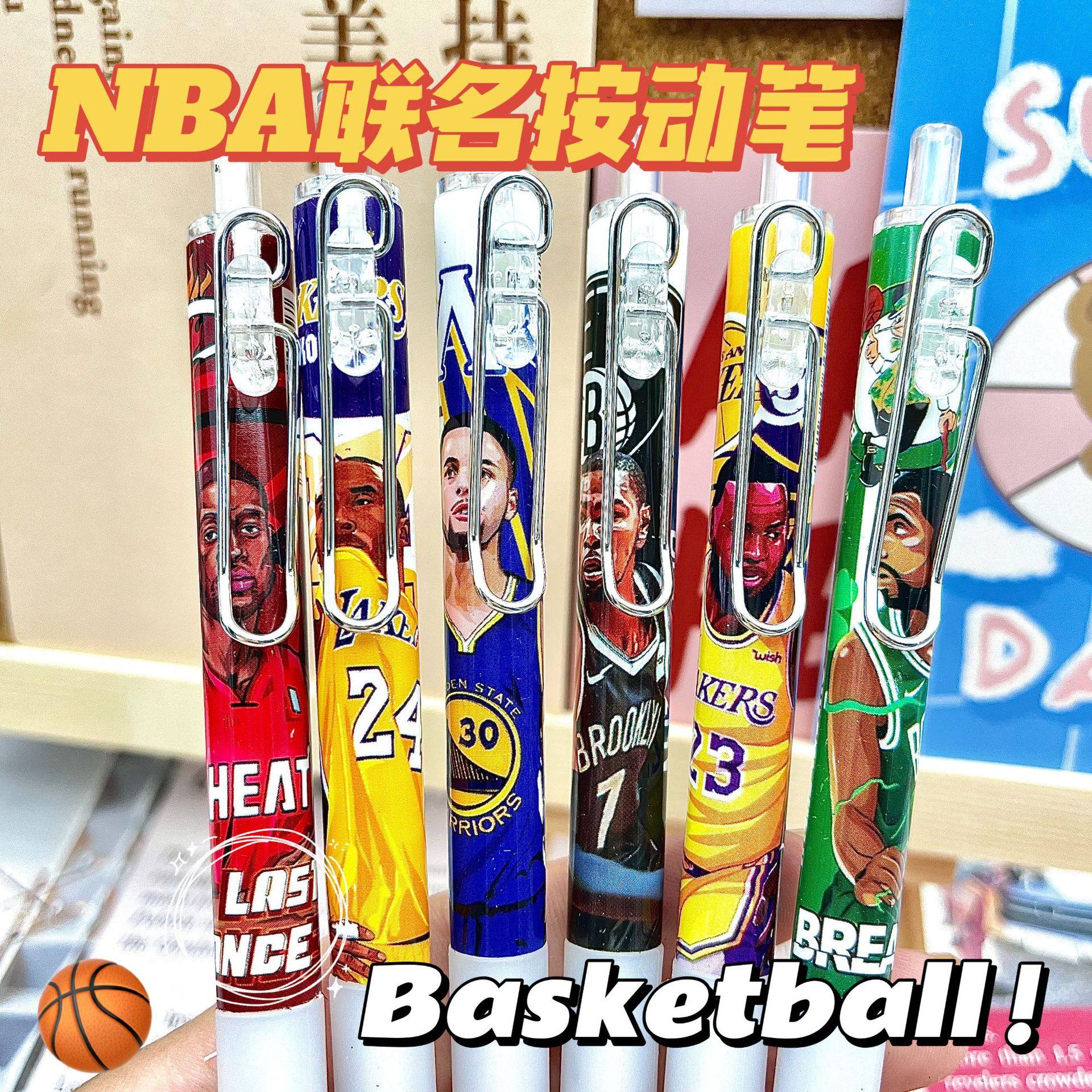 NBA按动中性笔ins高颜值科比库里学生专用限量版球星纪念按动笔黑