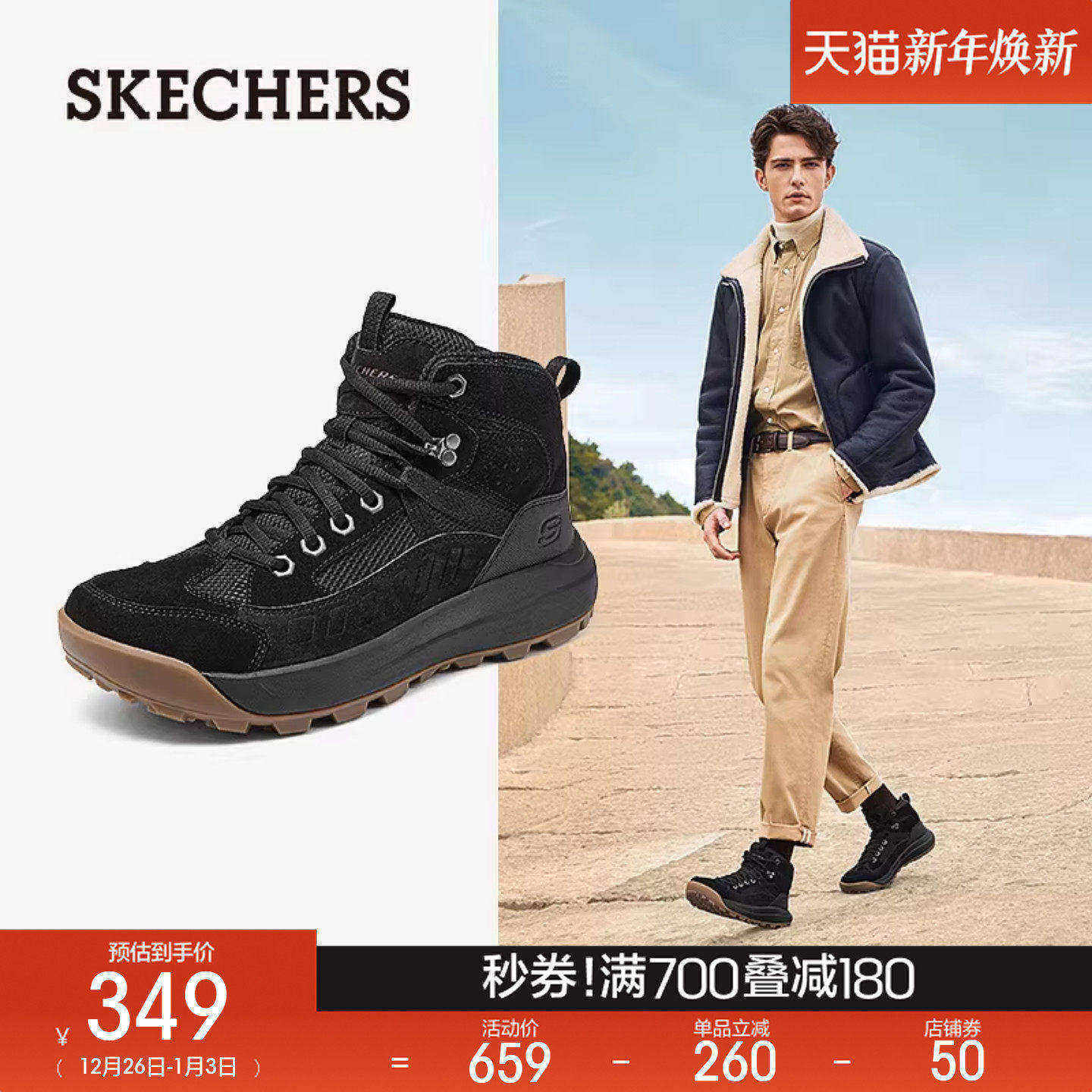 斯凯奇冬季男子复古高帮雪地靴厚底舒适百搭休闲运动户外鞋大黄靴