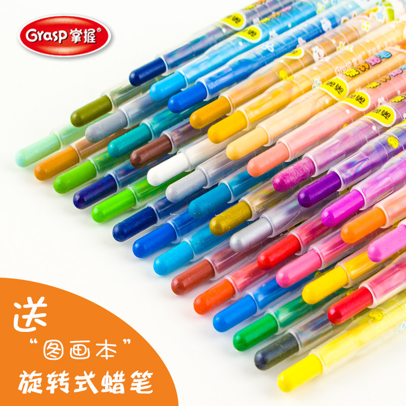 掌握36色旋转蜡笔套装幼儿园彩色蜡笔12色儿童油画棒24色环保不脏手不易断橡皮可擦可水洗彩笔学生宝宝彩绘棒