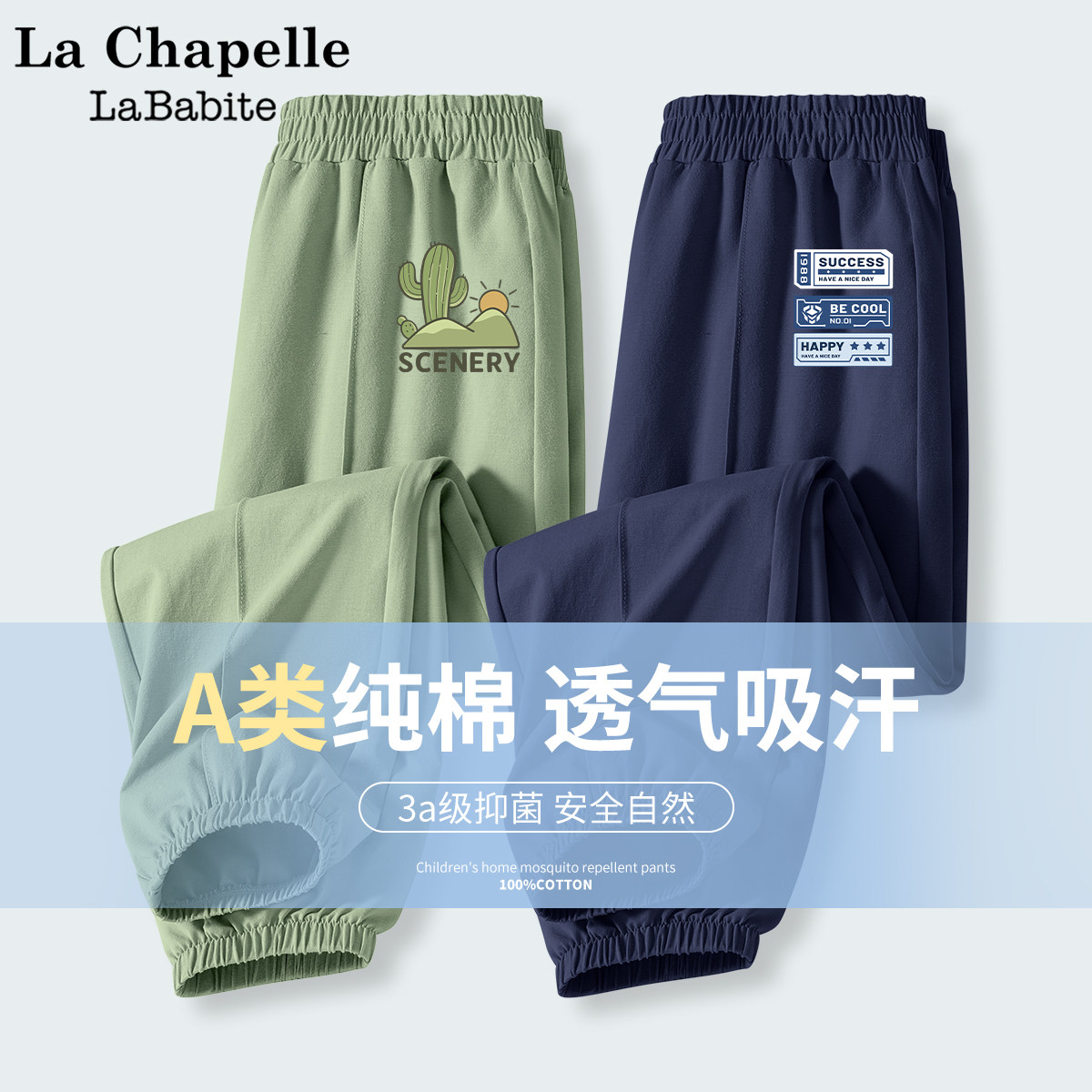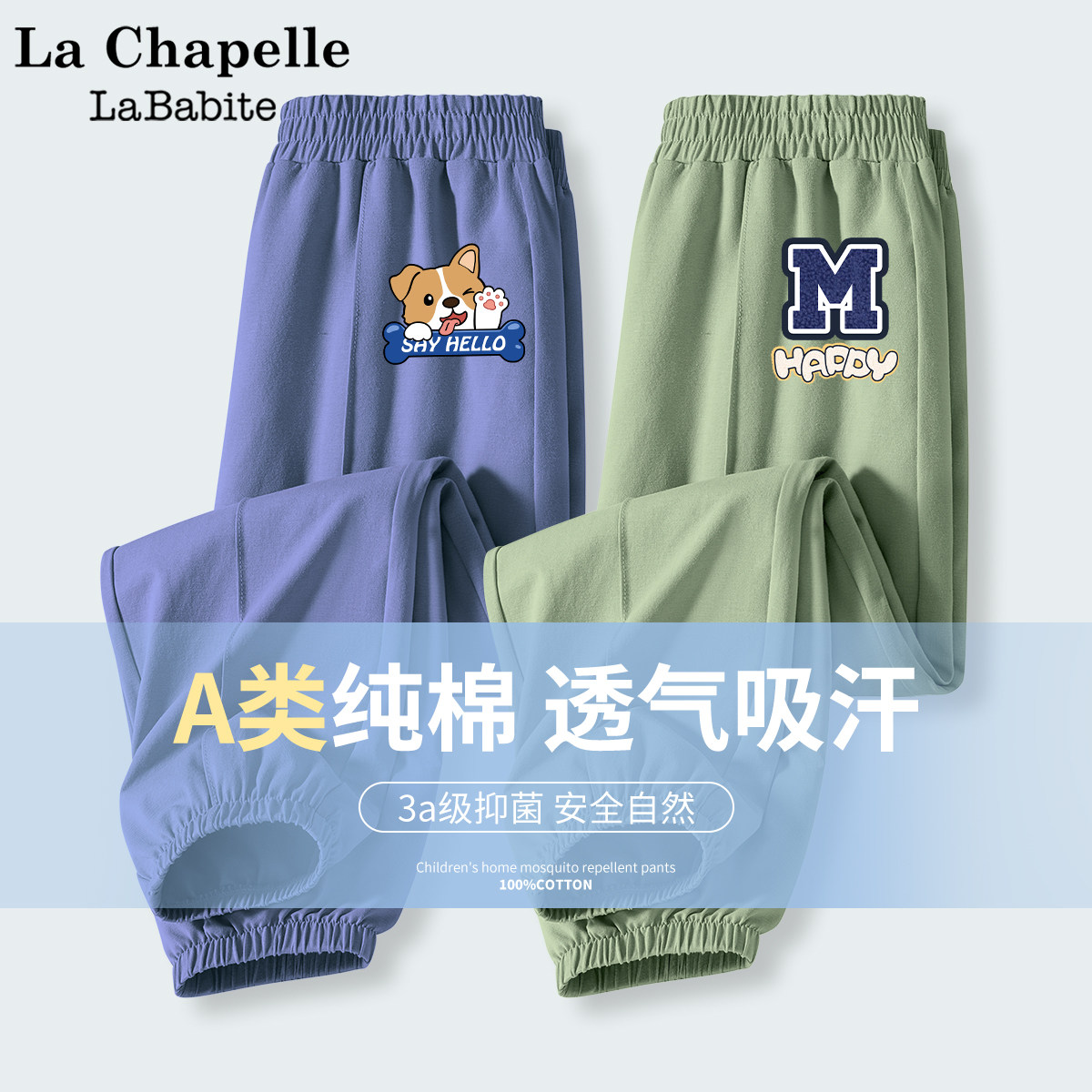 拉夏贝尔联名男童夏季裤子2025新款中大童薄款防蚊裤儿童夏装纯棉