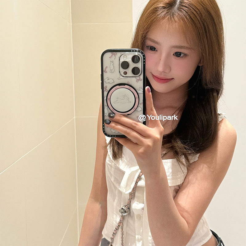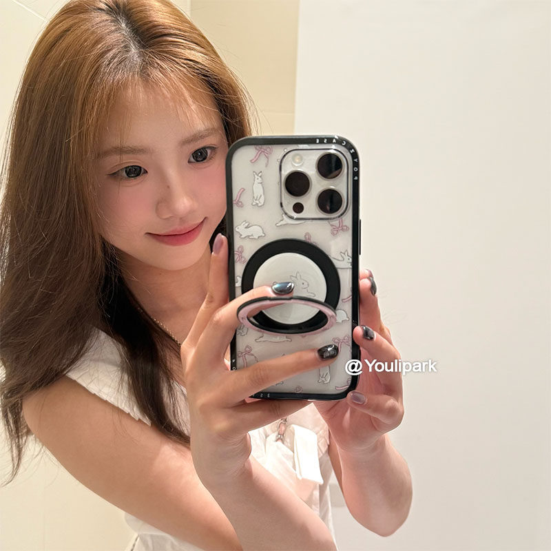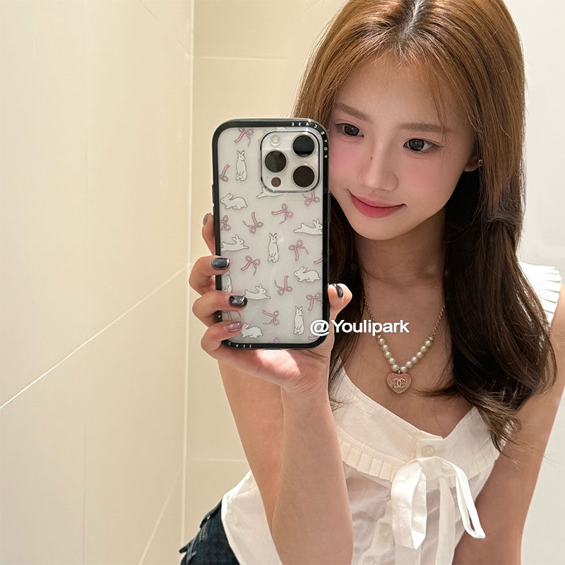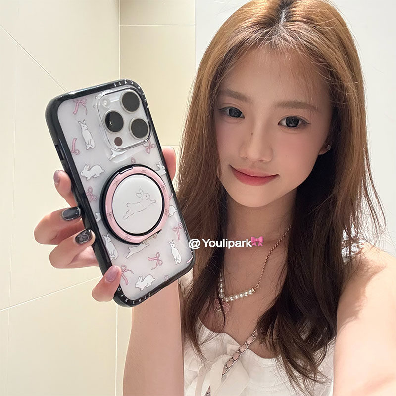 由里公园ins甜美少女可爱蝴蝶结兔兔支架15适用16pro苹果16ProMax手机壳iPhone16全包14新款14Promax保护套13