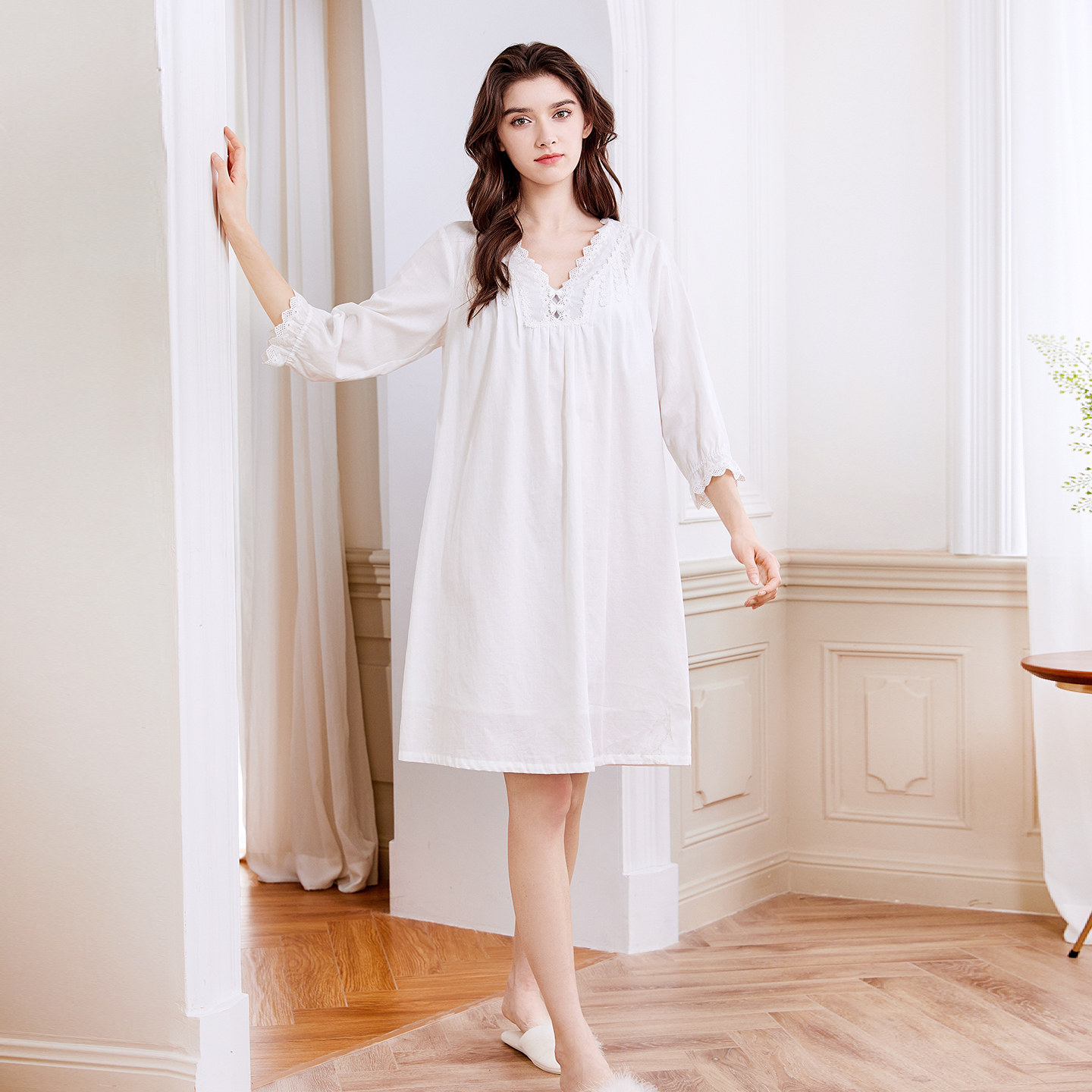美标纯棉睡衣女夏天甜美公主风蕾丝家居服全棉质可外穿薄款睡裙春