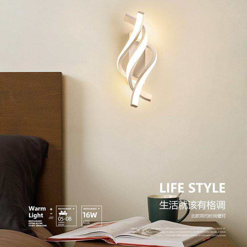 led壁灯 简约白色房间卧室床头壁灯 个性创意楼梯过道灯可调光