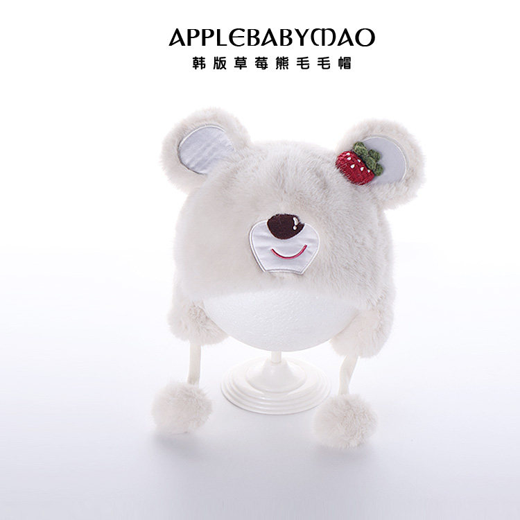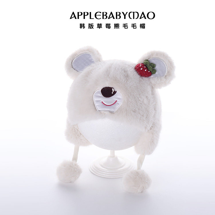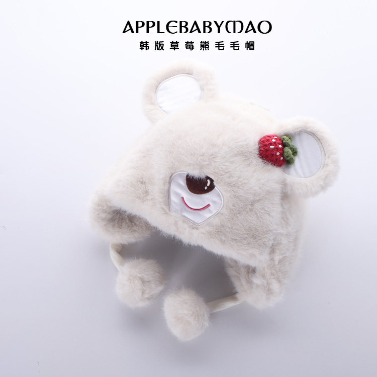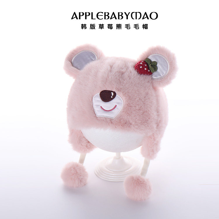 秋冬季男女宝宝帽子儿童毛绒护耳帽可爱卡通草莓熊防风帽2-4岁3萌