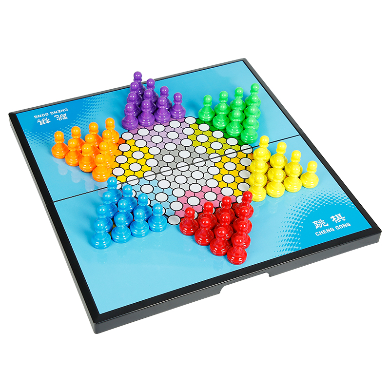 儿童磁吸跳棋学生益智五子棋二合一大号磁性棋子游戏玩具折叠棋盘