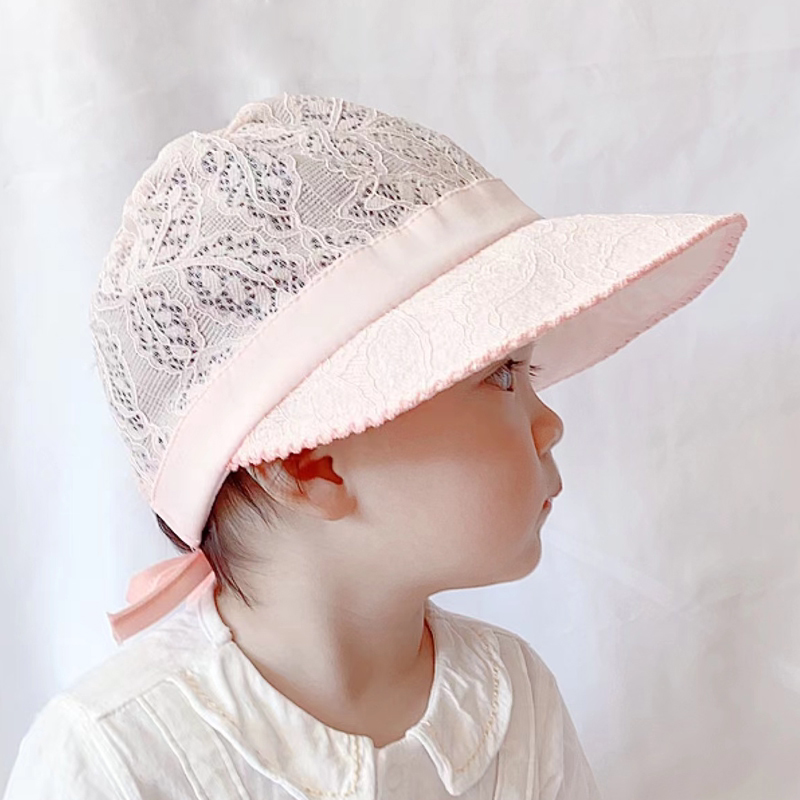 婴儿帽子春夏薄款大檐遮阳防晒女宝宝蕾丝可爱超萌渔夫帽可调节