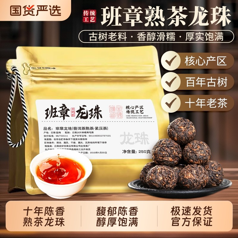 十年陈香班章熟茶龙珠云南普洱茶熟茶勐海味老熟茶古树沱茶陈年