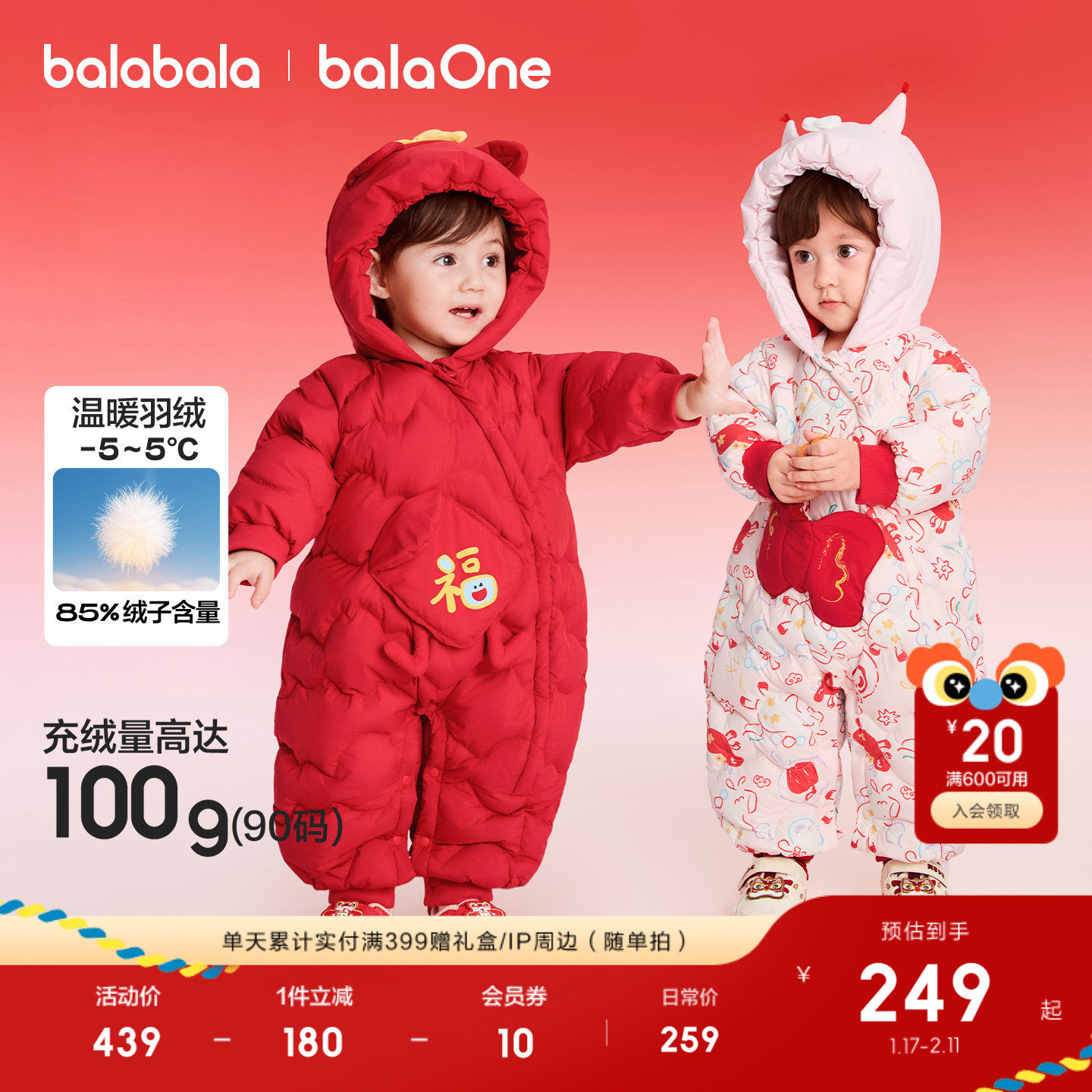 巴拉巴拉童装婴儿羽绒服新生儿连体衣服宝宝2026新款冬装哈衣红色