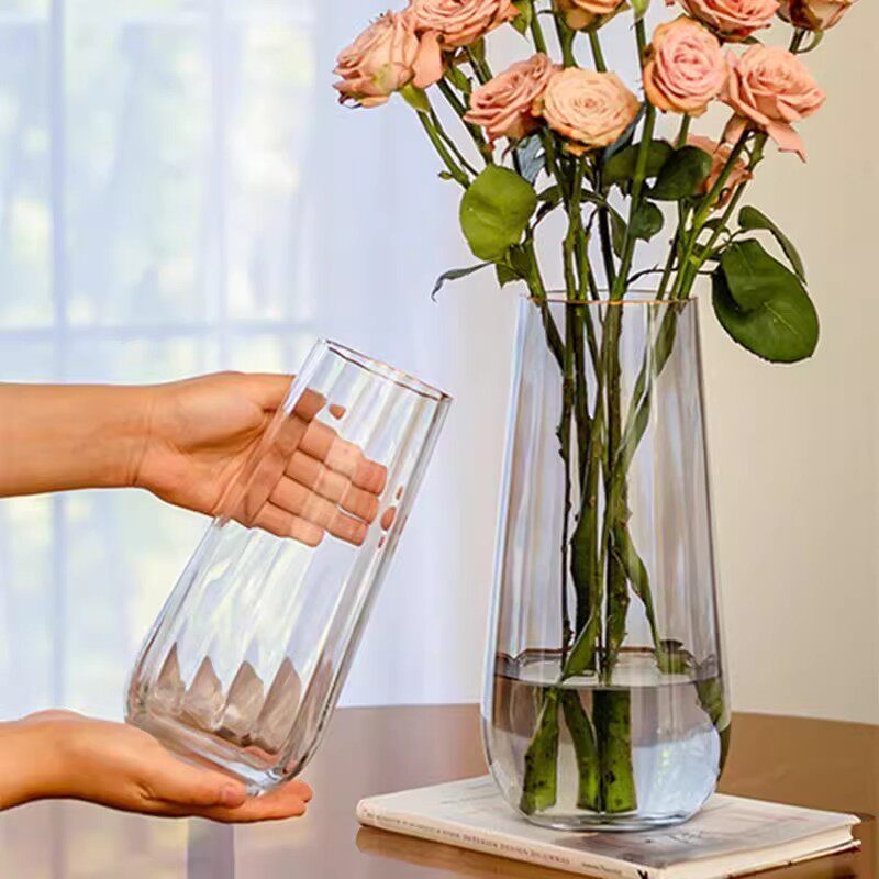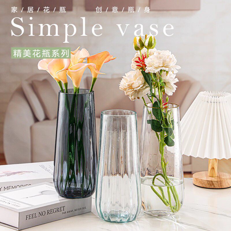轻奢玻璃花瓶直筒透明水养鲜花百合富贵竹ins高颜值客厅装饰摆件