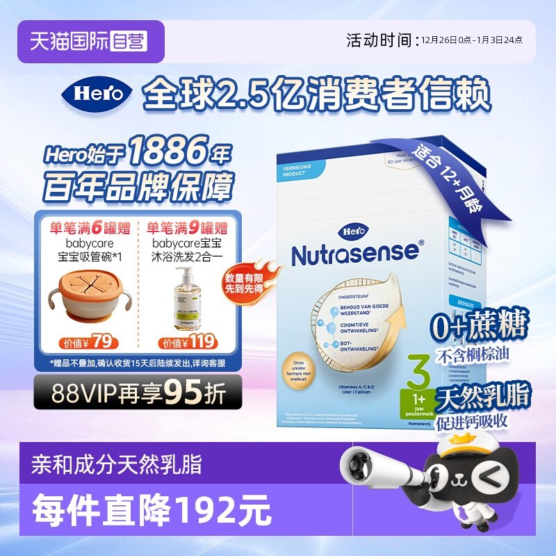 【自营】Herobaby荷兰版DHA乳糖婴幼儿配方奶粉3段700g*1盒(1岁+)