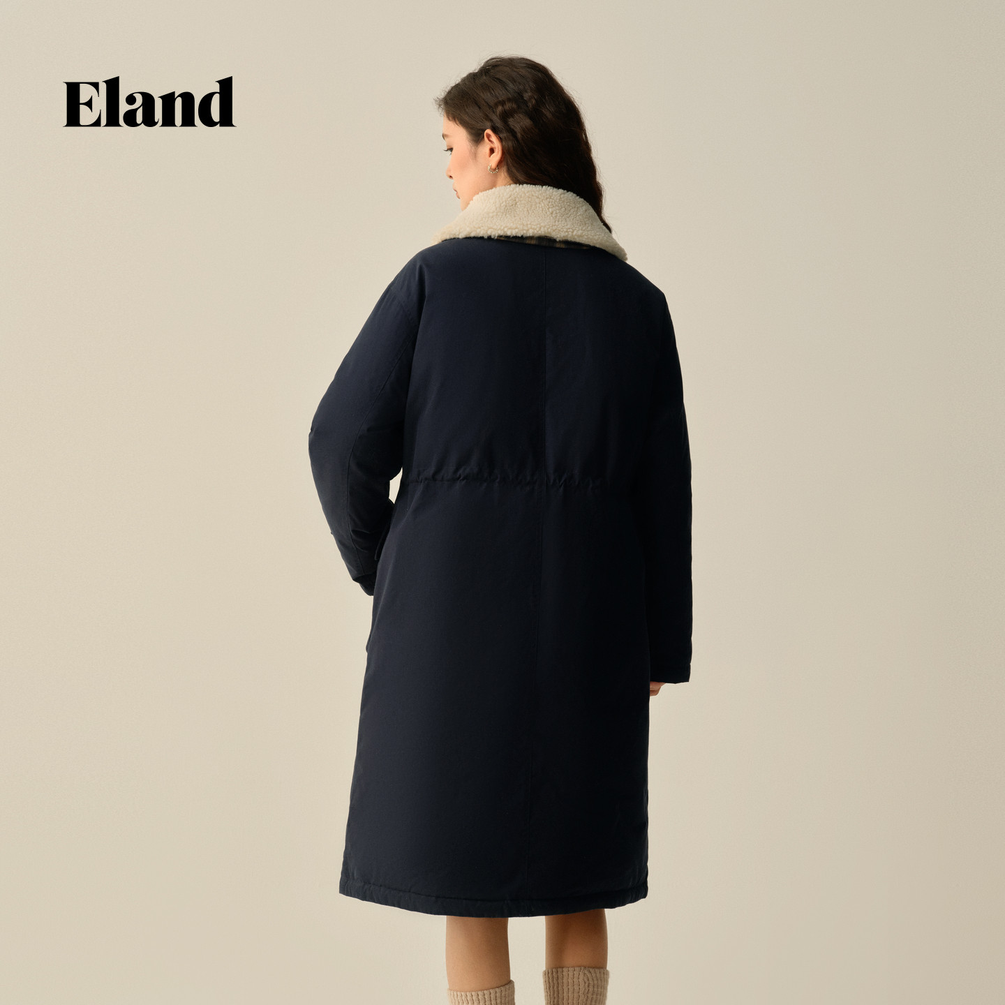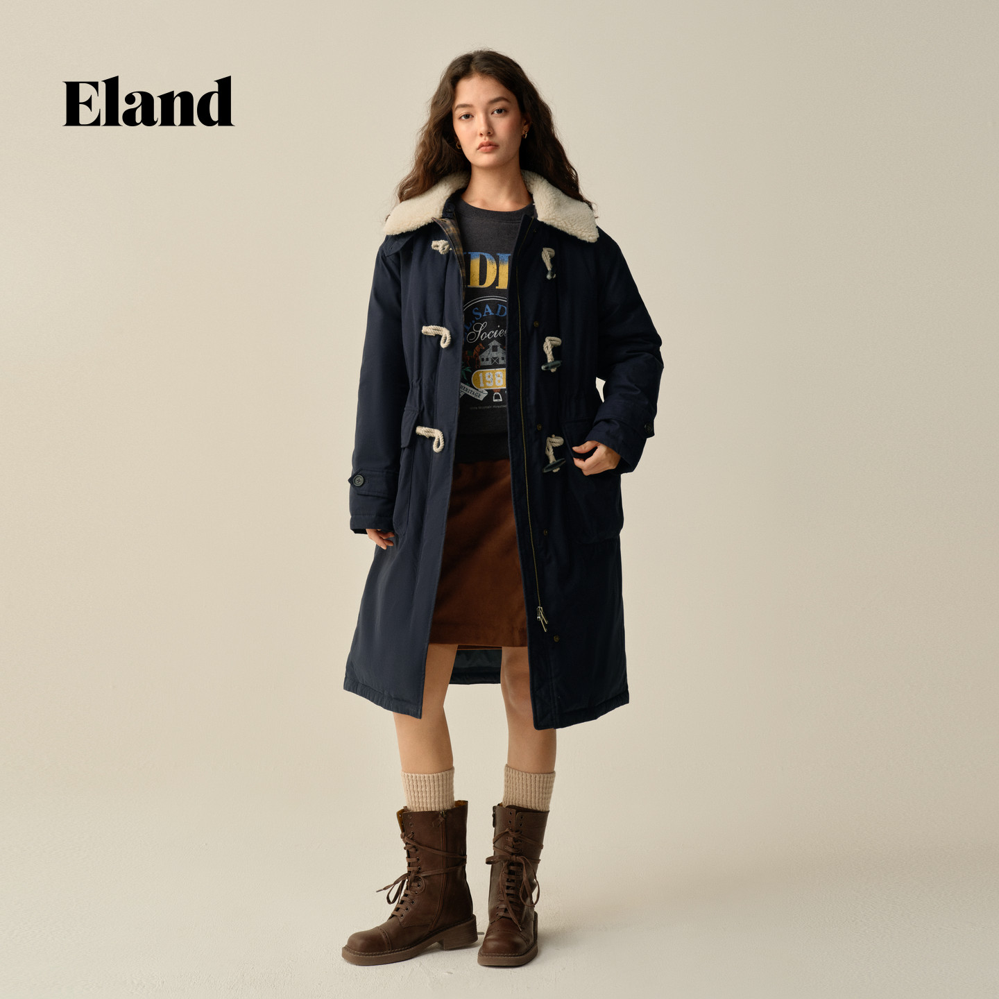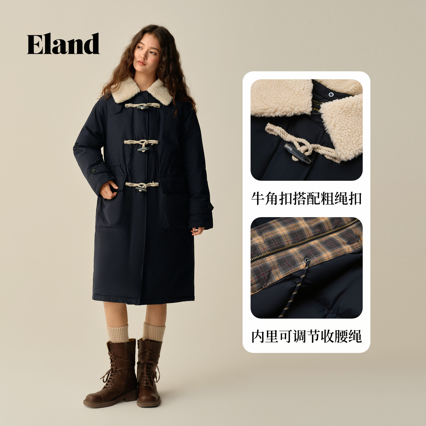 【鹅绒】Eland衣恋羽绒服女直筒微收腰毛领牛角扣外套2025冬新款