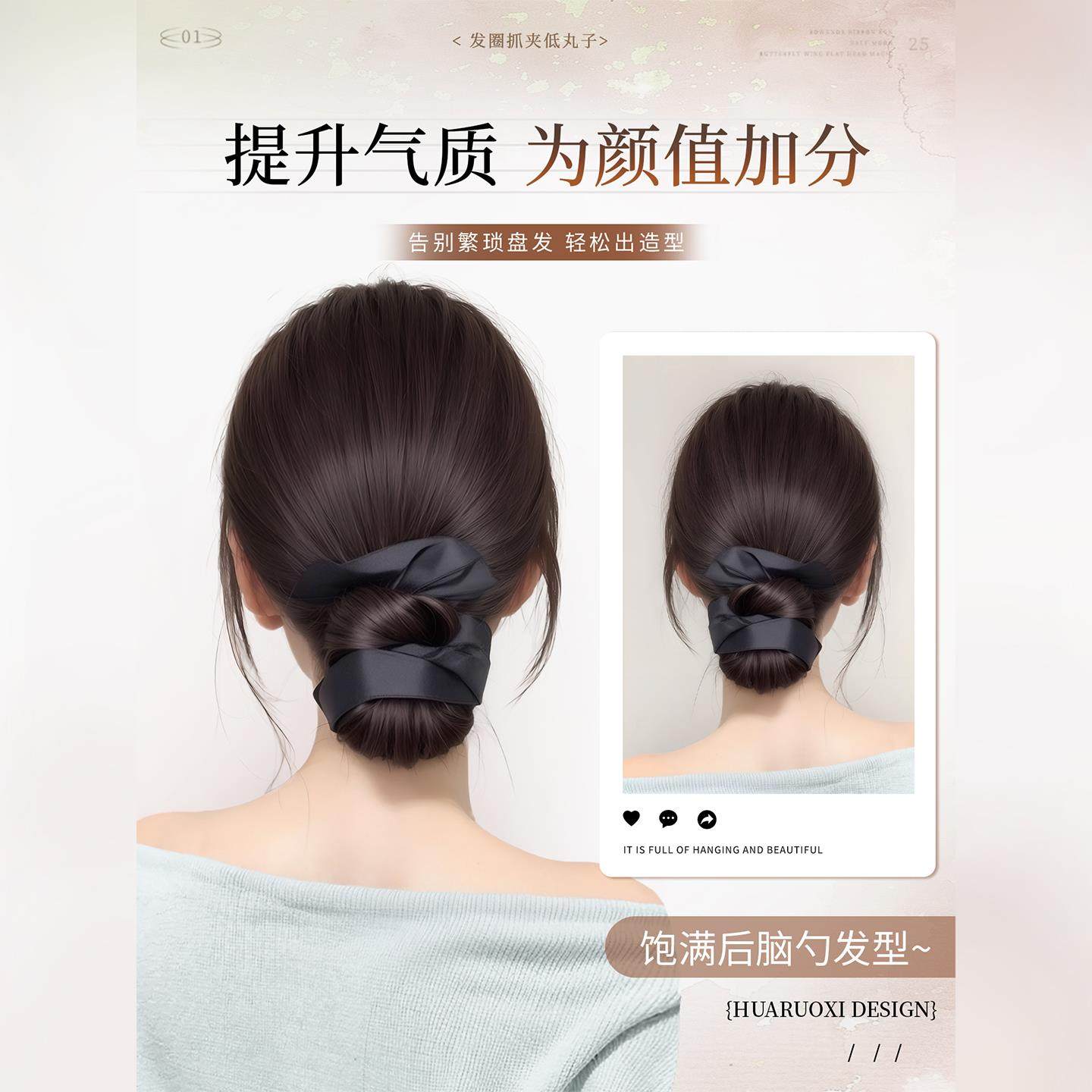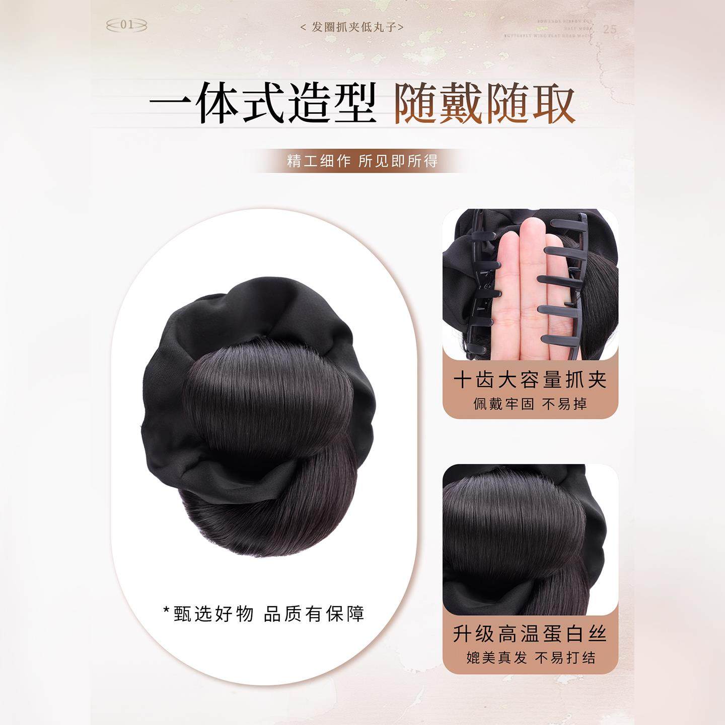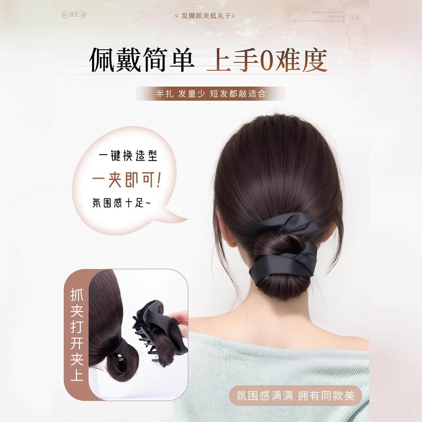 低扎丸子头假发抓夹女盘发发包后脑勺神器发圈短发发量少蓬松真发