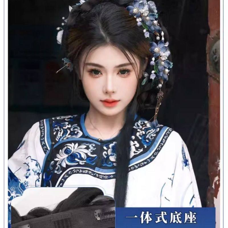 清汉女发髻汉服假发全套头饰一体式懒人清朝古风盘发丸子头假发包